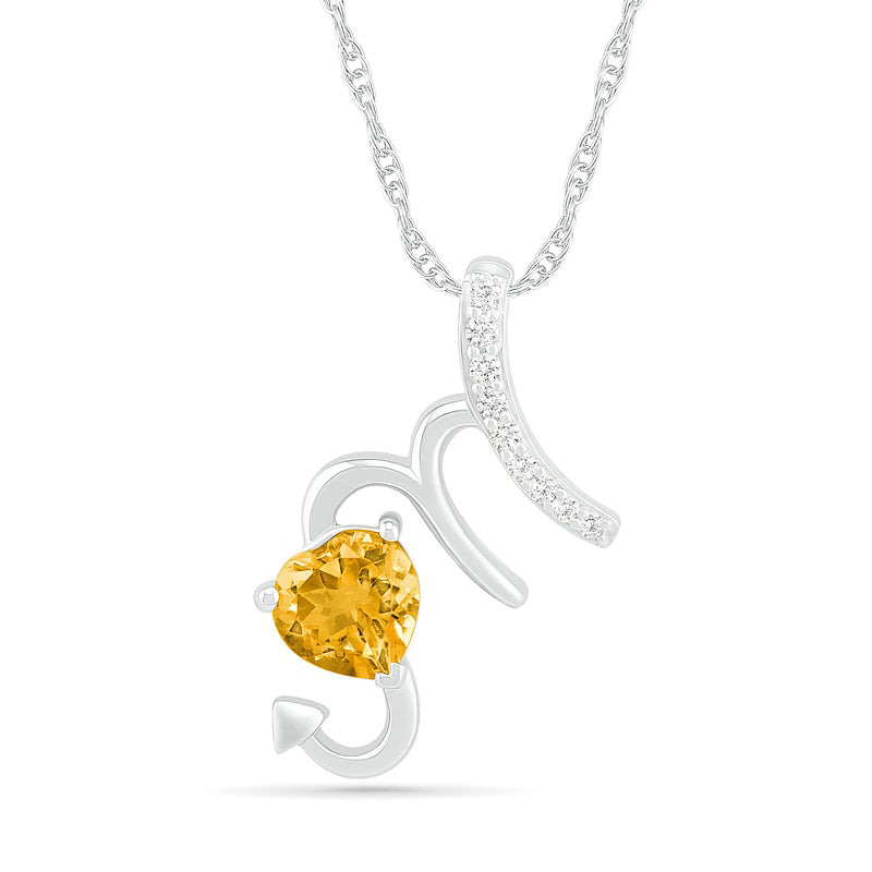 6.0mm Heart-Shaped Citrine and White Lab-Created Sapphire Scorpio Zodiac Sign Pendant in Sterling Silver