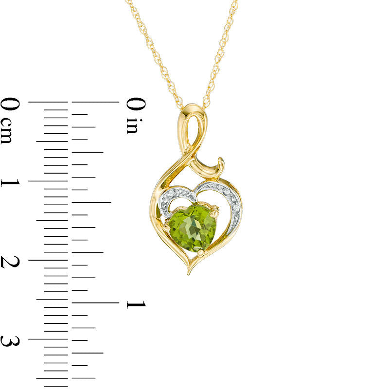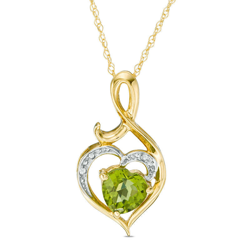 6.0mm Heart-Shaped Peridot and Natural Diamond Accent Swirl Heart Pendant in 10K Yellow Gold