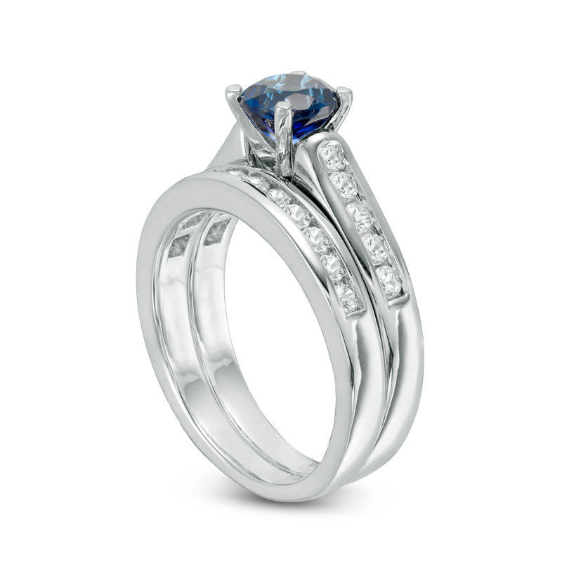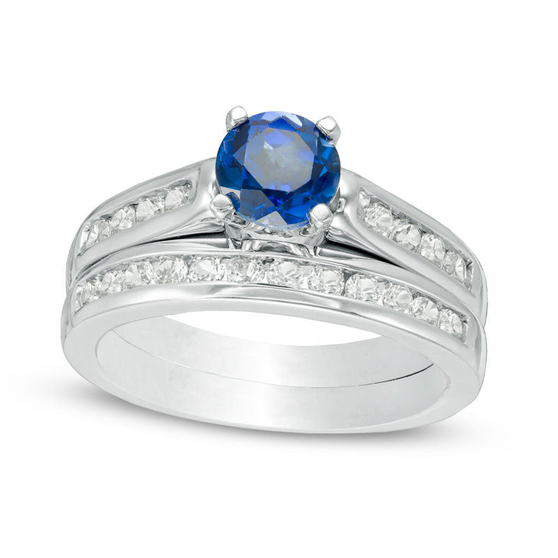 6.0mm Lab-Created Blue and White Sapphire Bridal Engagement Ring Set in Sterling Silver