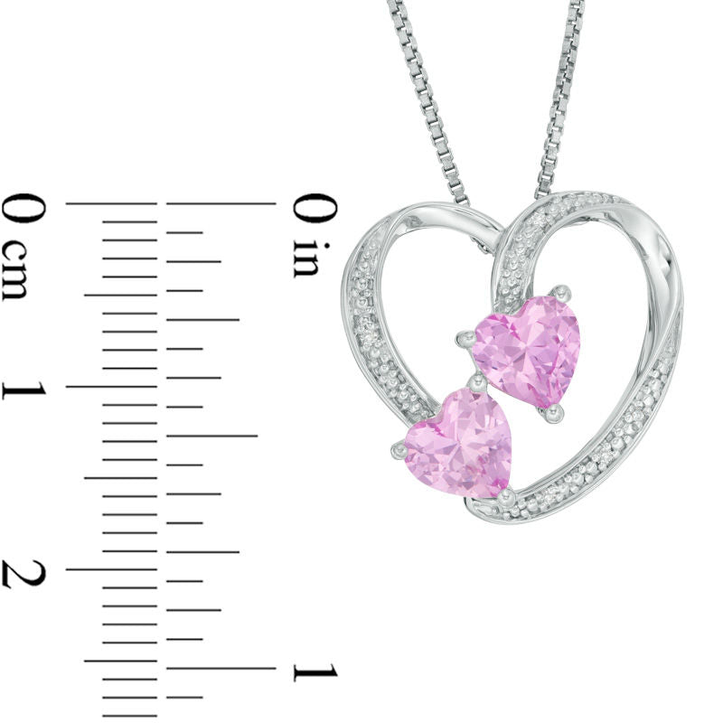6.0mm Lab-Created Pink Sapphire and Diamond Accent Loop Heart Pendant in Sterling Silver