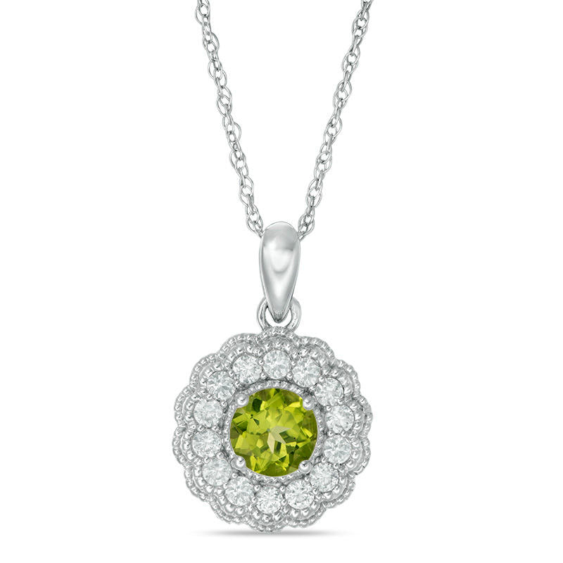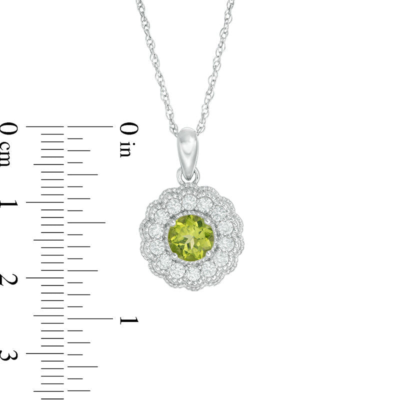 6.0mm Peridot and Lab-Created White Sapphire Flower Pendant in Sterling Silver