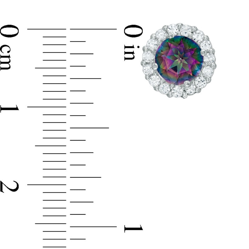 6.0mm Rainbow Quartz and Lab-Created White Sapphire Frame Stud Earrings in 10K White Gold