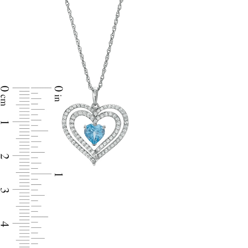6.0mm Swiss Blue Topaz and White Lab-Created Sapphire Heart Pendant in Sterling Silver