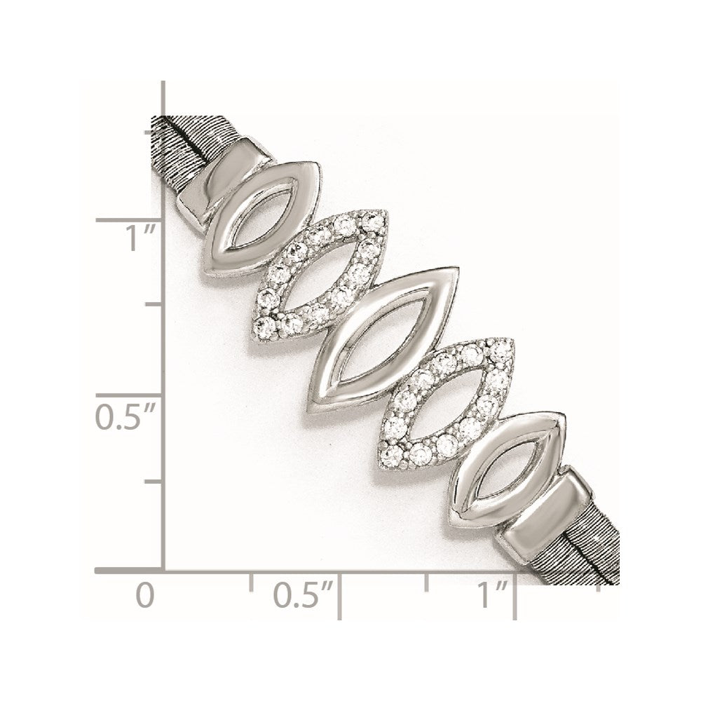 Meet the stunning 6.5 Inch Sterling Silver Polished CZ Bracelet, a perfect blend of elegance and charm. Crafted from 925 sterling silver, this bracelet flaunts a gleaming polished finish. The bracelet is adorned with sparkling white cubic zirconia stones that catch the light beautifully. It features a 1.5-inch extender, allowing a touch of flexibility in length, while a fancy lobster clasp ensures a secure fit. Casted with precision, this semi-solid piece dazzles with beauty and comfort. With its rhodium plating, it shines with style and durability. Brighten up your accessory collection with this Sterling Silver Polished CZ Bracelet today.
