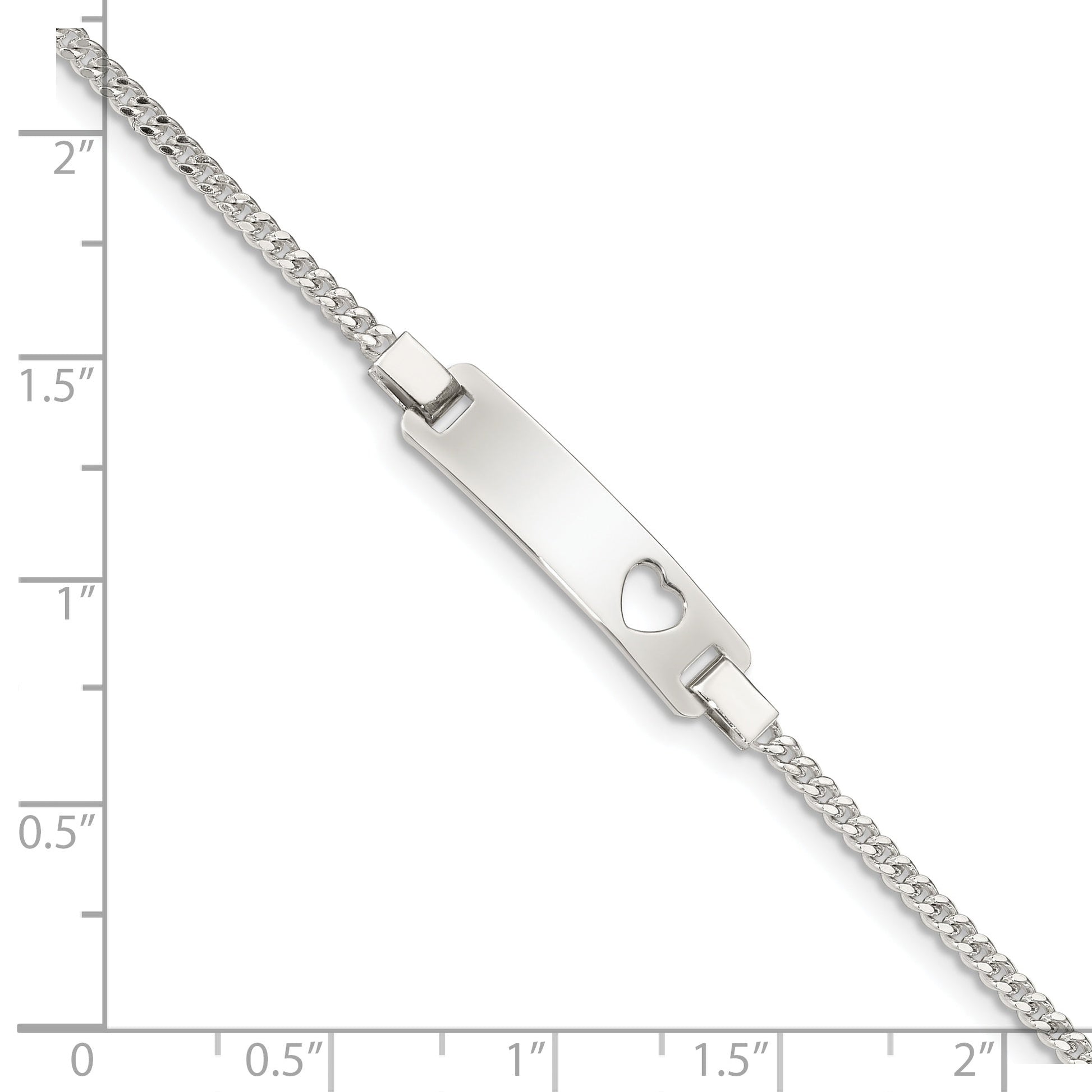 The 6 Inch Sterling Silver Adjustable Baby ID Bracelet is a charming piece crafted from 925 sterling silver. Gleaming with a polished finish, this six-inch bracelet is designed to fit comfortably on a little one's wrist. Its elegant 2 mm chain width and solid structure provide durability, while the bracelet's lightweight nature ensures it is gentle on tender skin. Featuring an adjustable mechanism, it grows with your child. The spring ring clasp offers secure fastening. Personalize it with an engraving to make it a timeless keepsake. The 6 Inch Sterling Silver Adjustable Baby ID Bracelet makes a thoughtful gift for any little one.