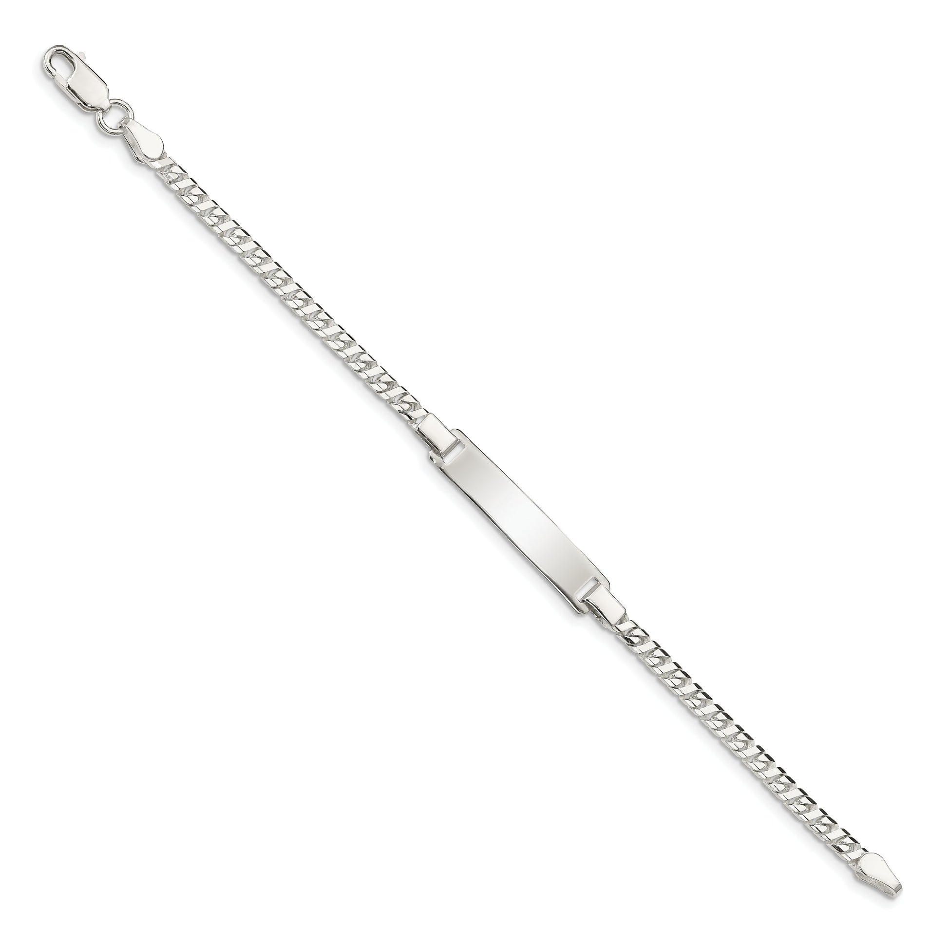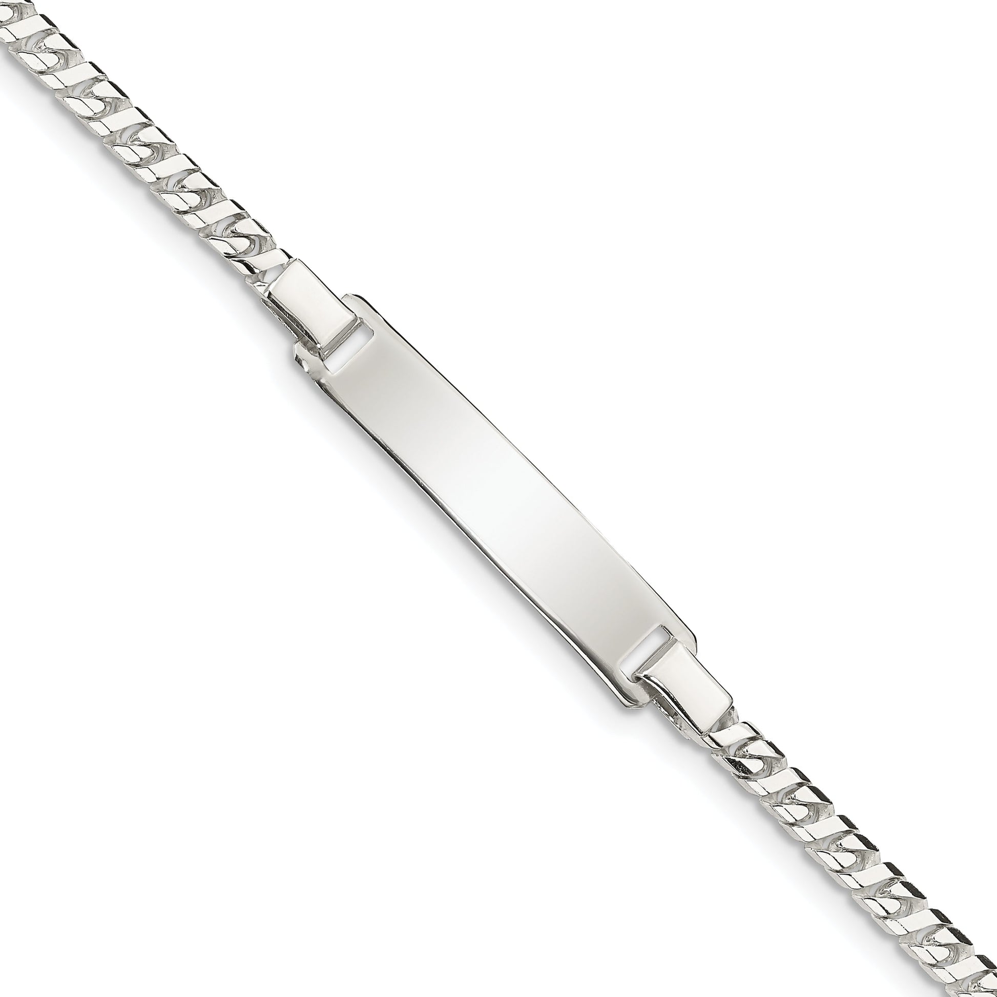 The 6 Inch Sterling Silver Baby ID Bracelet is a stunning keepsake for your little one. Crafted from high-purity 925 sterling silver, this polished bracelet radiates a timeless charm. Its elegant design includes a 6-inch chain with a width of 3mm, perfectly fit for a child's wrist. A secure lobster clasp ensures it stays in place during everyday activities. The bracelet also features an engravable plate, adding a personal touch to this jewelry piece. The simplicity and quality of the 6 Inch Sterling Silver Baby ID Bracelet make it a memorable gift for any child.