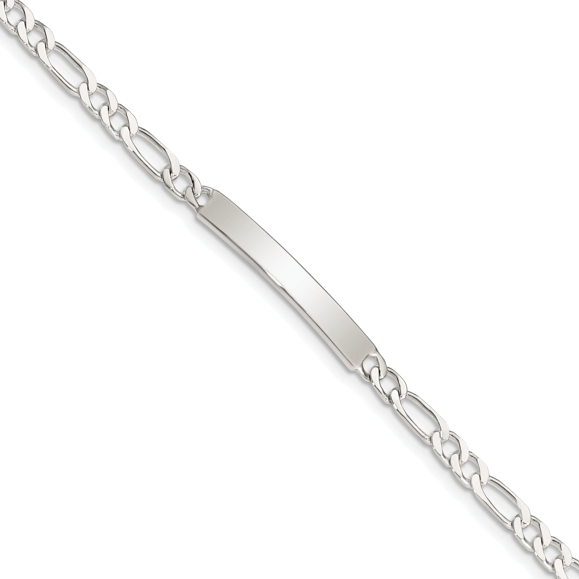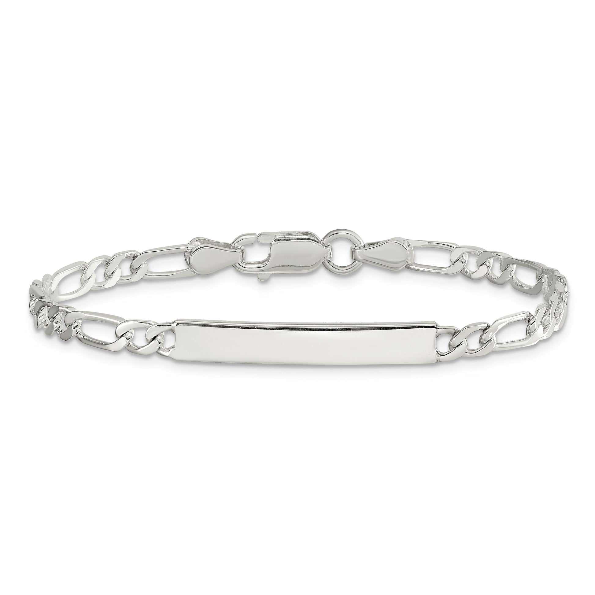 The 6 Inch Sterling Silver Engravable Figaro Link ID Bracelet offers a touch of style and personalization for your little one. Crafted from rich sterling silver with a purity of 925, this bracelet boasts a polished finish that captures the eye. The Figaro chain design adds a hint of elegance with its 4mm width, ensuring comfort and durability for everyday wear. The distinct engravable ID plate makes it perfect for adding a special name or date. Secure with a sturdy lobster clasp, the 6-inch bracelet wraps securely around the wrist without compromising style. The 6 Inch Sterling Silver Engravable Figaro Link ID Bracelet is both a practical and endearing treasure for any young fashion enthusiast.