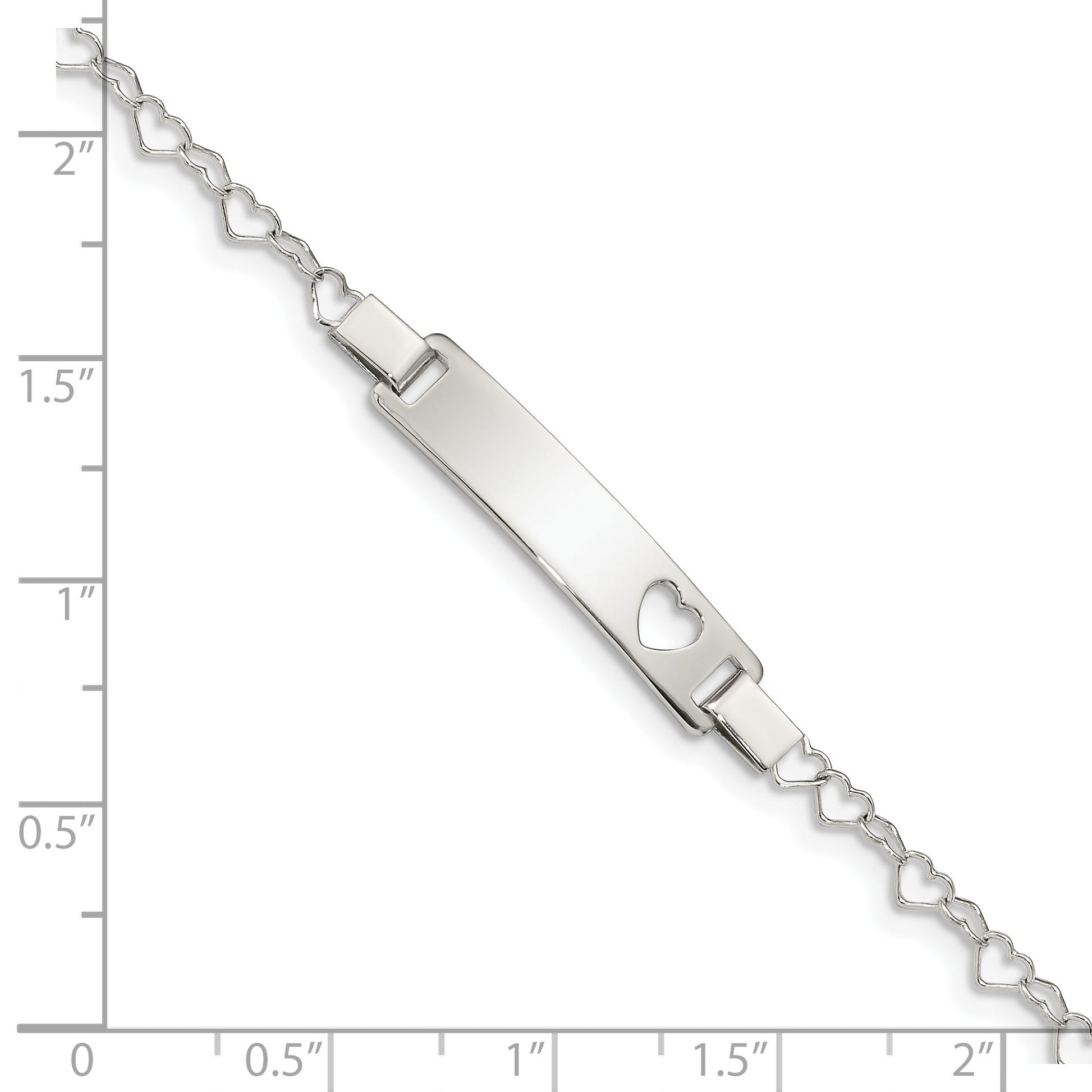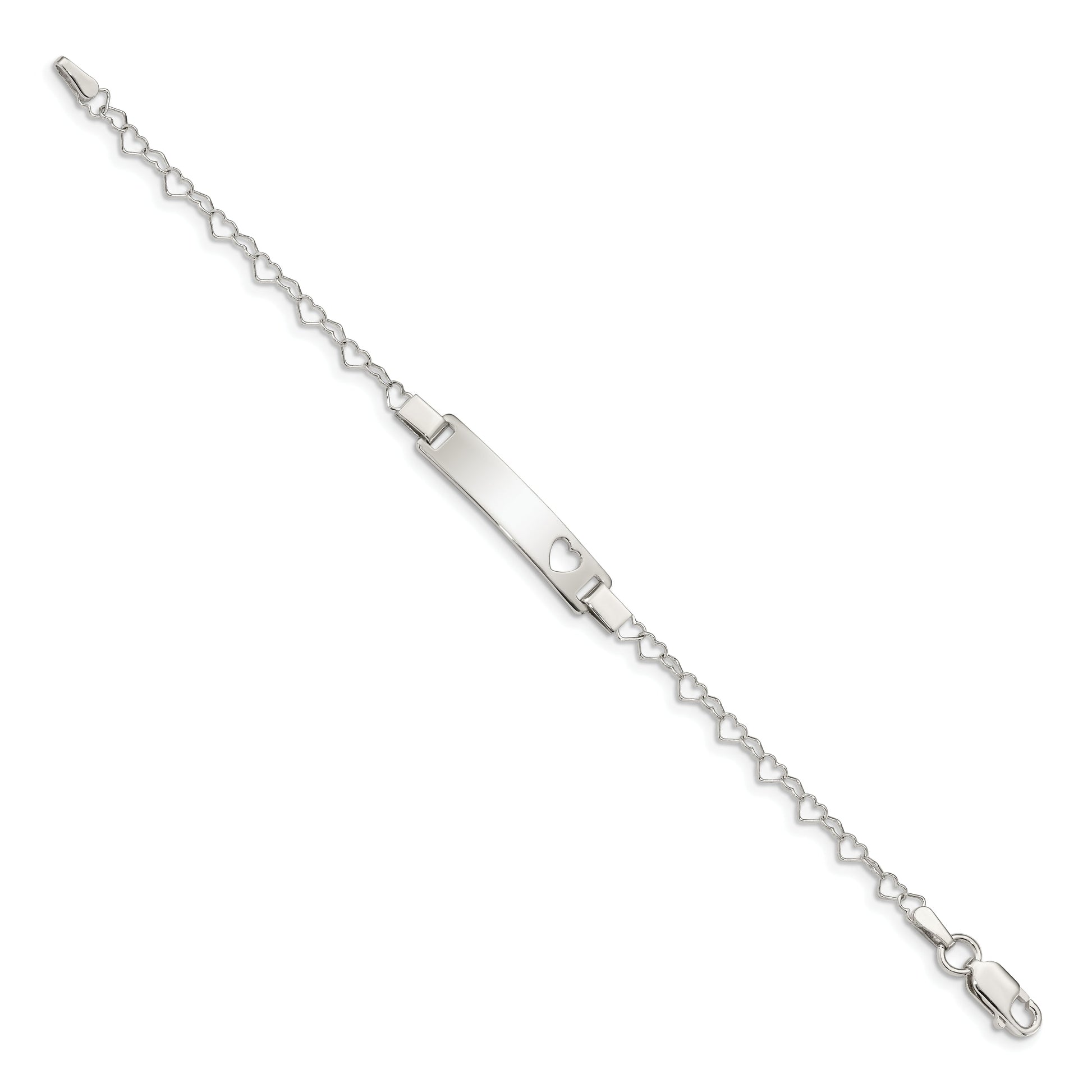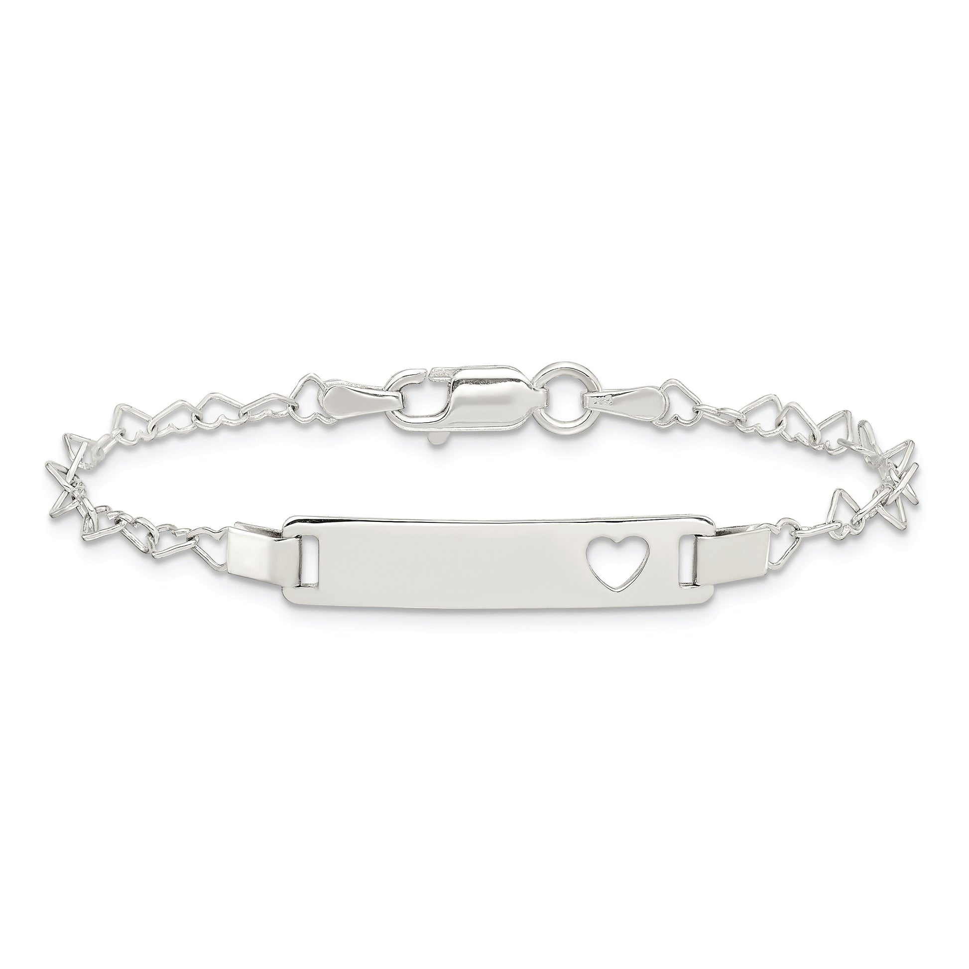 The 6-Inch Sterling Silver Heart Baby ID Bracelet is an elegant treasure for little ones. Crafted from 925 sterling silver, it shines with a polished finish. The bracelet fits wrists up to 6 inches and features a charming heart element. Its 3mm wide chain is both durable and stylish, secured with a lobster clasp that keeps it in place. This solid and engravable piece is perfect for personalizing with your child's name or special date. The 6-Inch Sterling Silver Heart Baby ID Bracelet makes a thoughtful gift for any occasion.