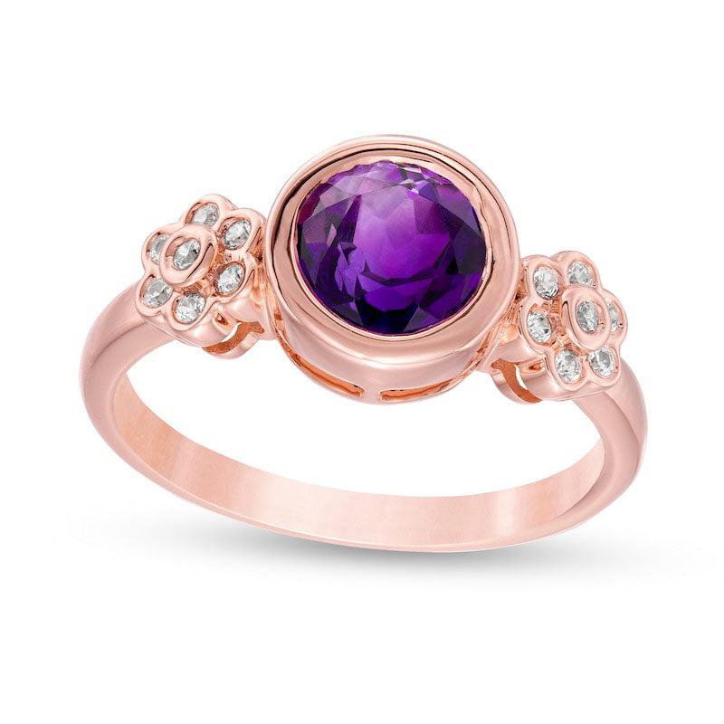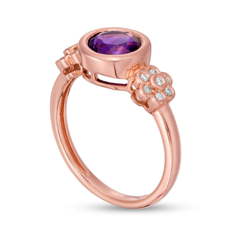 7.0mm Amethyst and 0.10 CT. T.W. Natural Diamond Double Flower Ring in Solid 10K Rose Gold