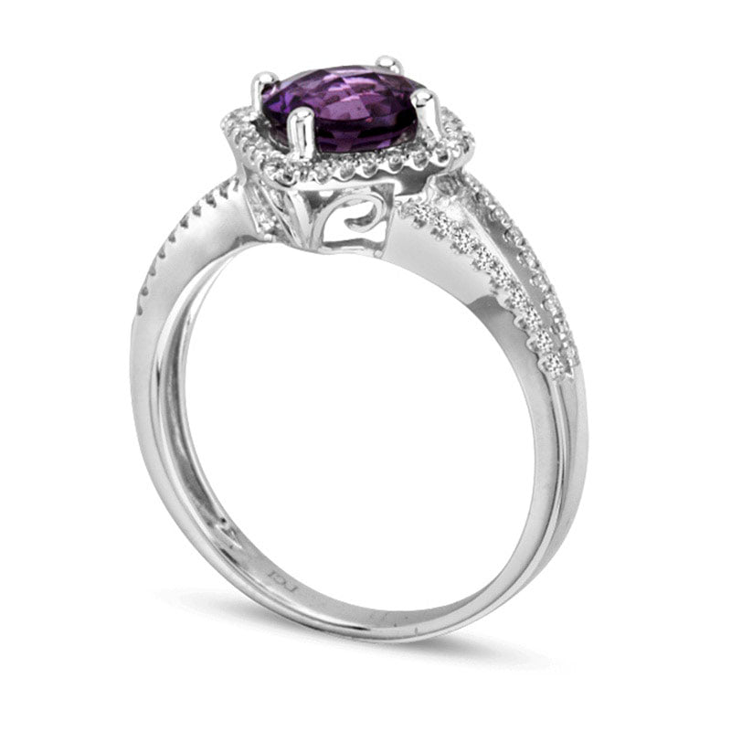 7.0mm Amethyst and 0.25 CT. T.W. Natural Diamond Ring in Solid 14K White Gold