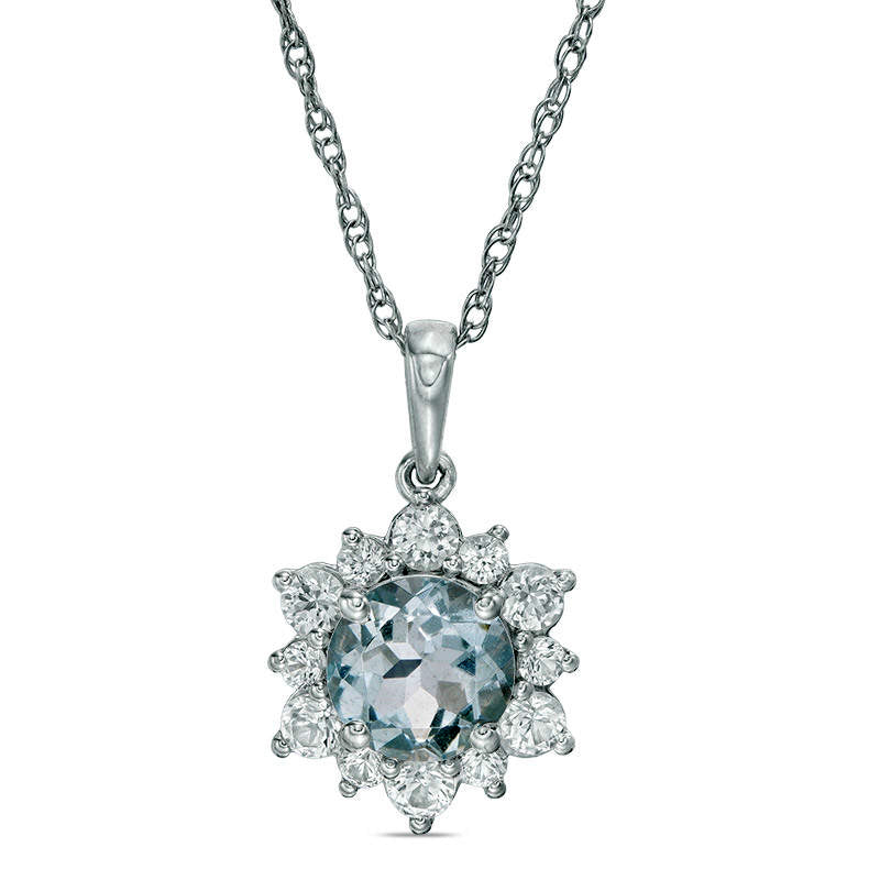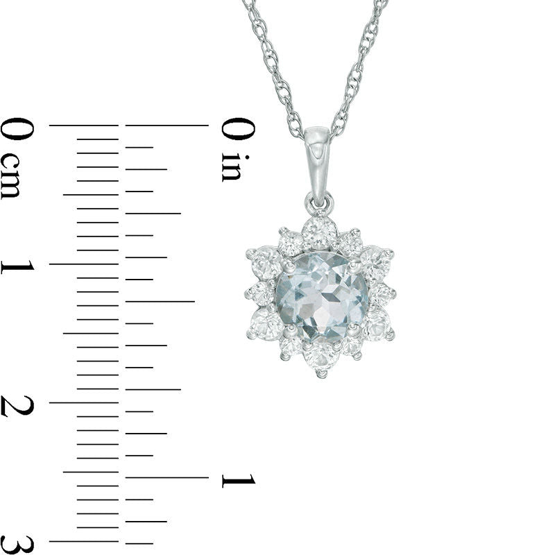 7.0mm Aquamarine and Lab-Created White Sapphire Sunburst Pendant in Sterling Silver