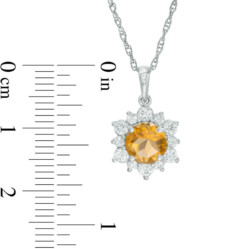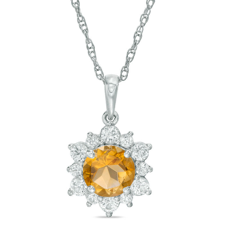 7.0mm Citrine and Lab-Created White Sapphire Sunburst Pendant in Sterling Silver