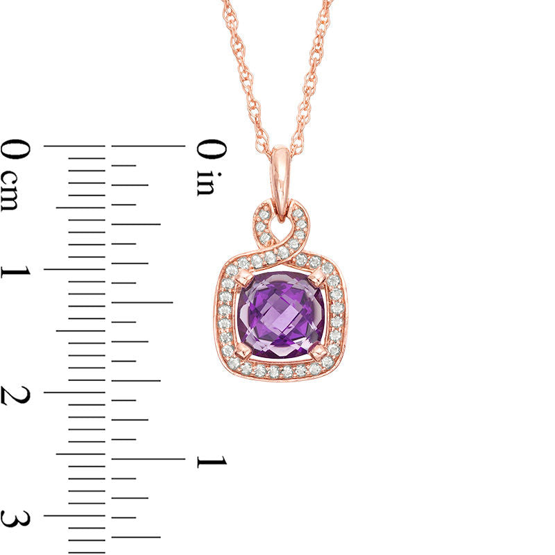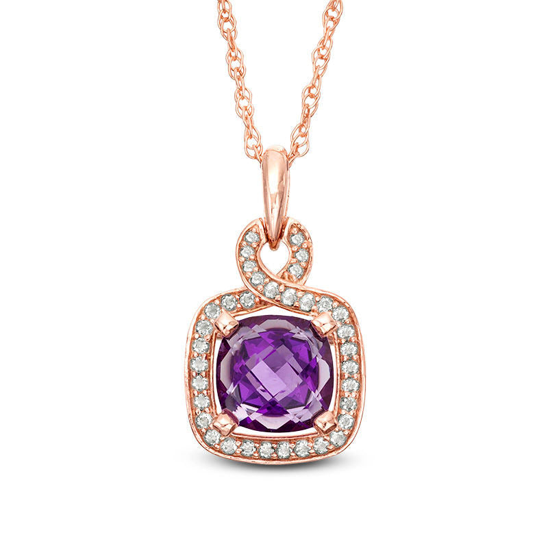 7.0mm Cushion-Cut Amethyst and Lab-Created White Sapphire Frame Loop Pendant in Sterling Silver with 14K Rose Gold Plate