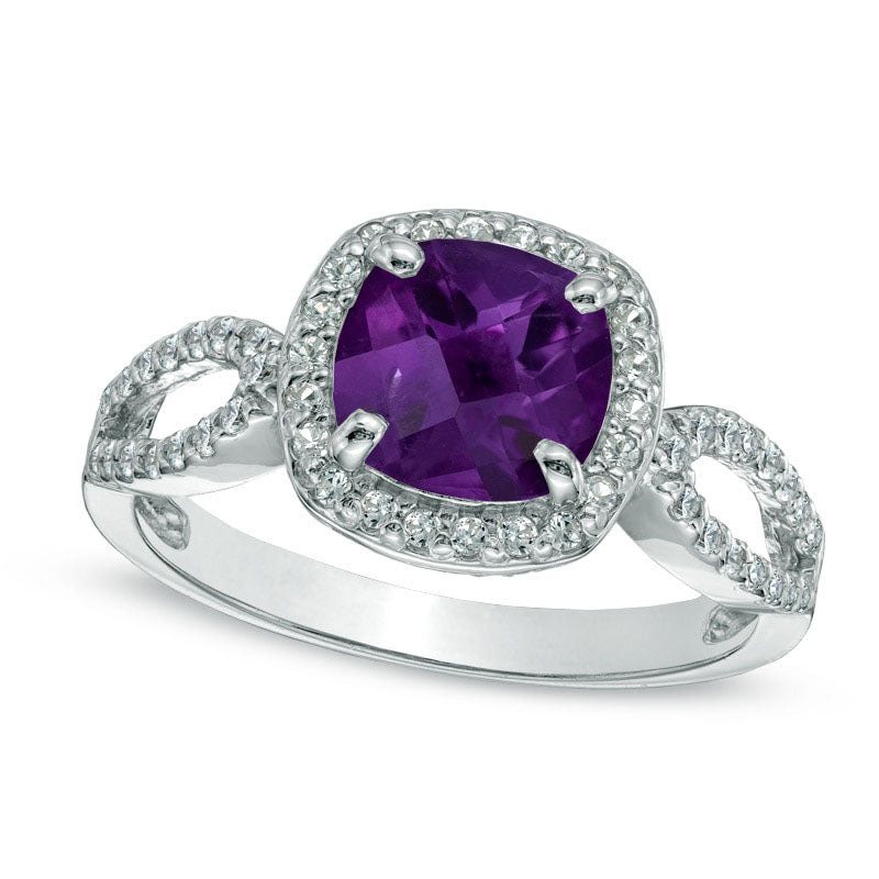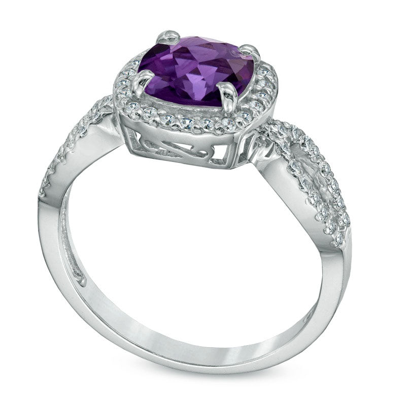 7.0mm Cushion-Cut Amethyst and Lab-Created White Sapphire Ring in Sterling Silver