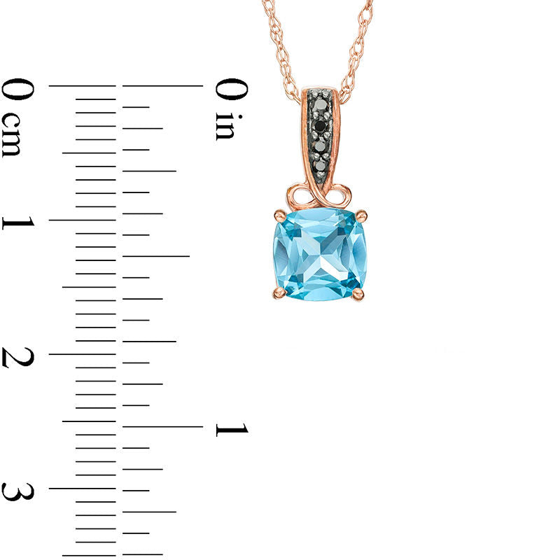 7.0mm Cushion-Cut Blue Topaz and 0.05 CT. T.W. Enhanced Black Natural Diamond Infinity Pendant in 10K Rose Gold