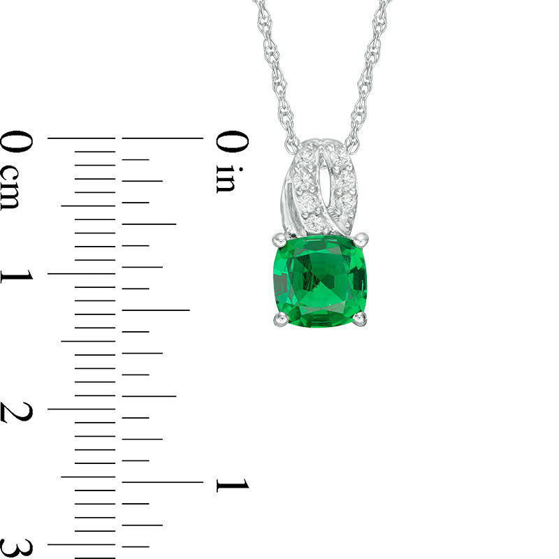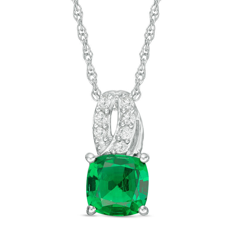 7.0mm Cushion-Cut Lab-Created Emerald and White Sapphire Pendant in Sterling Silver