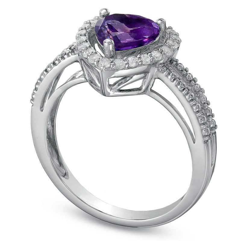 7.0mm Heart-Shaped Amethyst and Lab-Created White Sapphire Heart Frame Ring in Sterling Silver
