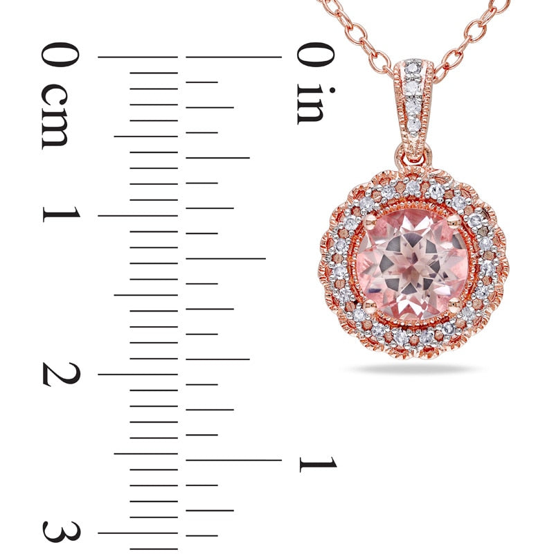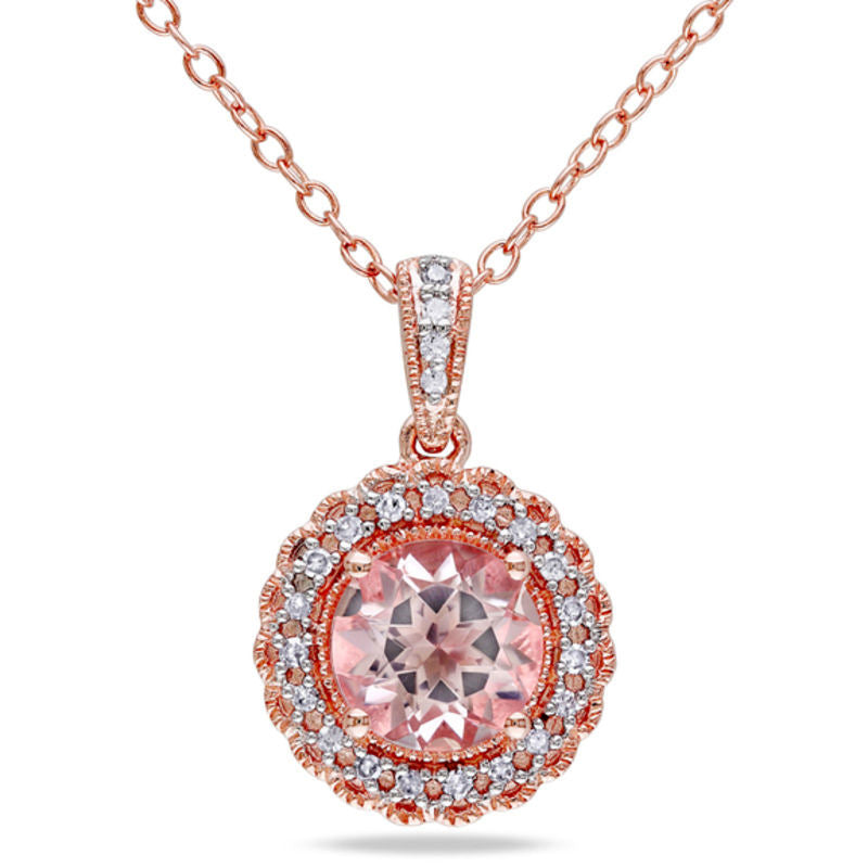 7.0mm Morganite and 0.1 CT. T.W. Natural Diamond Frame Pendant in Rose Rhodium Sterling Silver