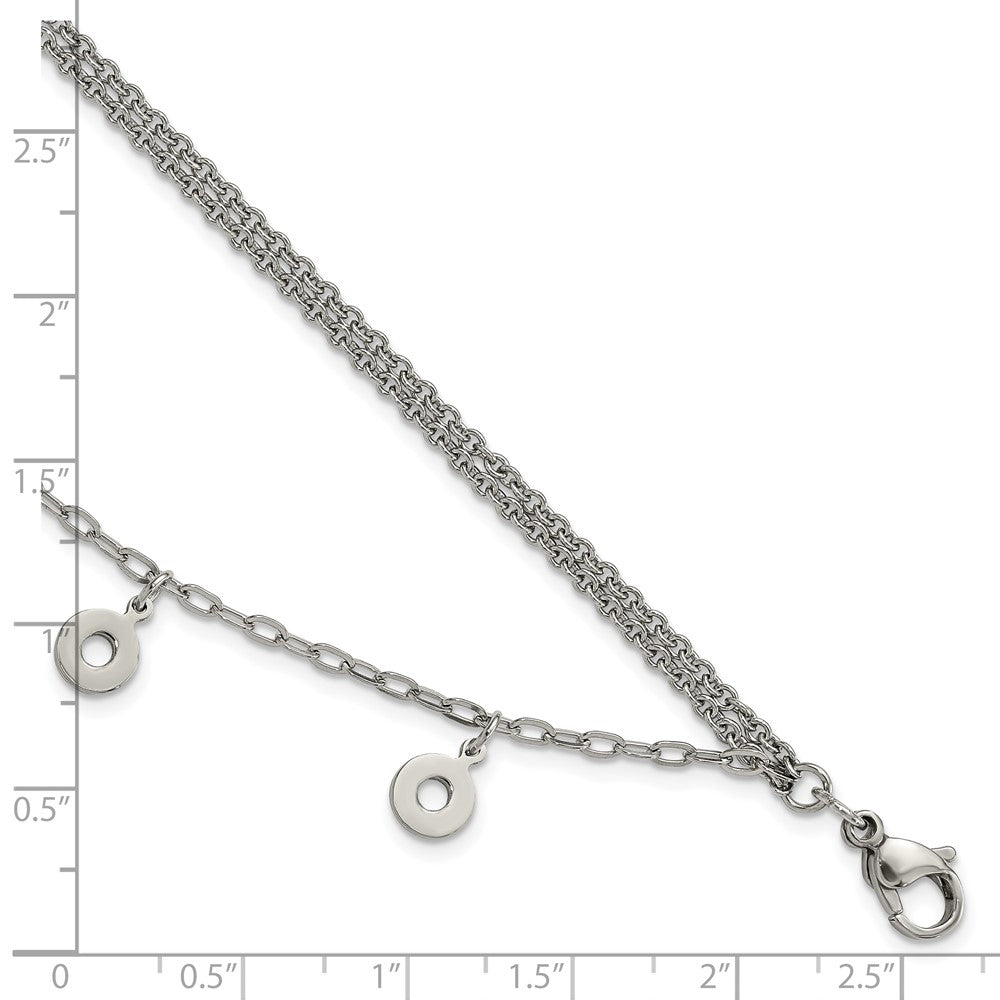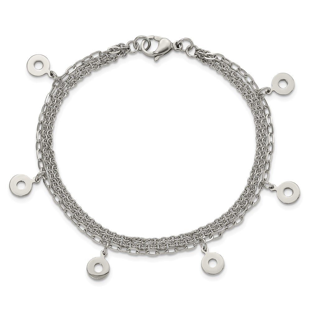 The 7.25 Inch Stainless Steel Polished Multi-Strand Circles Bracelet is a must-have accessory for any jewelry lover. This sleek, modern bracelet features a polished stainless steel finish that shines brilliantly. Its multi-strand design gives it a layered, chic look while ensuring durability. The 7.25-inch length and 2.2 mm width make it the perfect size for everyday wear. With a lobster clasp, it's secure and easy to wear. The bracelet comes elegantly gift-boxed, making it a perfect gift choice. Adorn your wrist with the timeless elegance of the 7.25 Inch Stainless Steel Polished Multi-Strand Circles Bracelet.