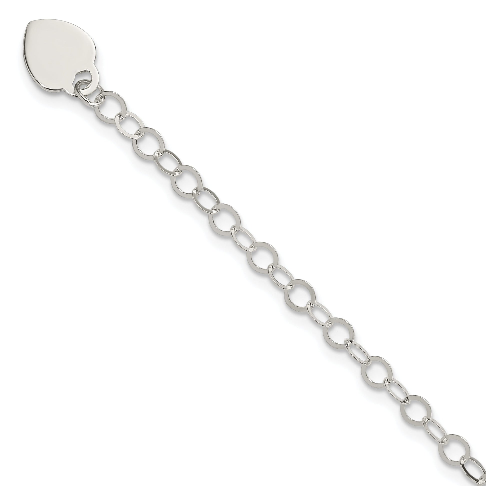 The stunning 7.25 Inch Sterling Silver Engraveable Heart Charm Bracelet is a beautiful piece for any jewelry lover. Crafted from polished 925 sterling silver, this elegant bracelet measures 7.25 inches in length and features a classic heart charm. The charm, 11 mm in length and 8 mm in width, offers personalization with engraving options. The bracelet boasts a secure lobster clasp, ensuring it stays safely on your wrist. With its flat back profile and solid design, this is a fashionable and meaningful accessory. The 7.25 Inch Sterling Silver Engraveable Heart Charm Bracelet makes the perfect heartfelt gift or personal keepsake.