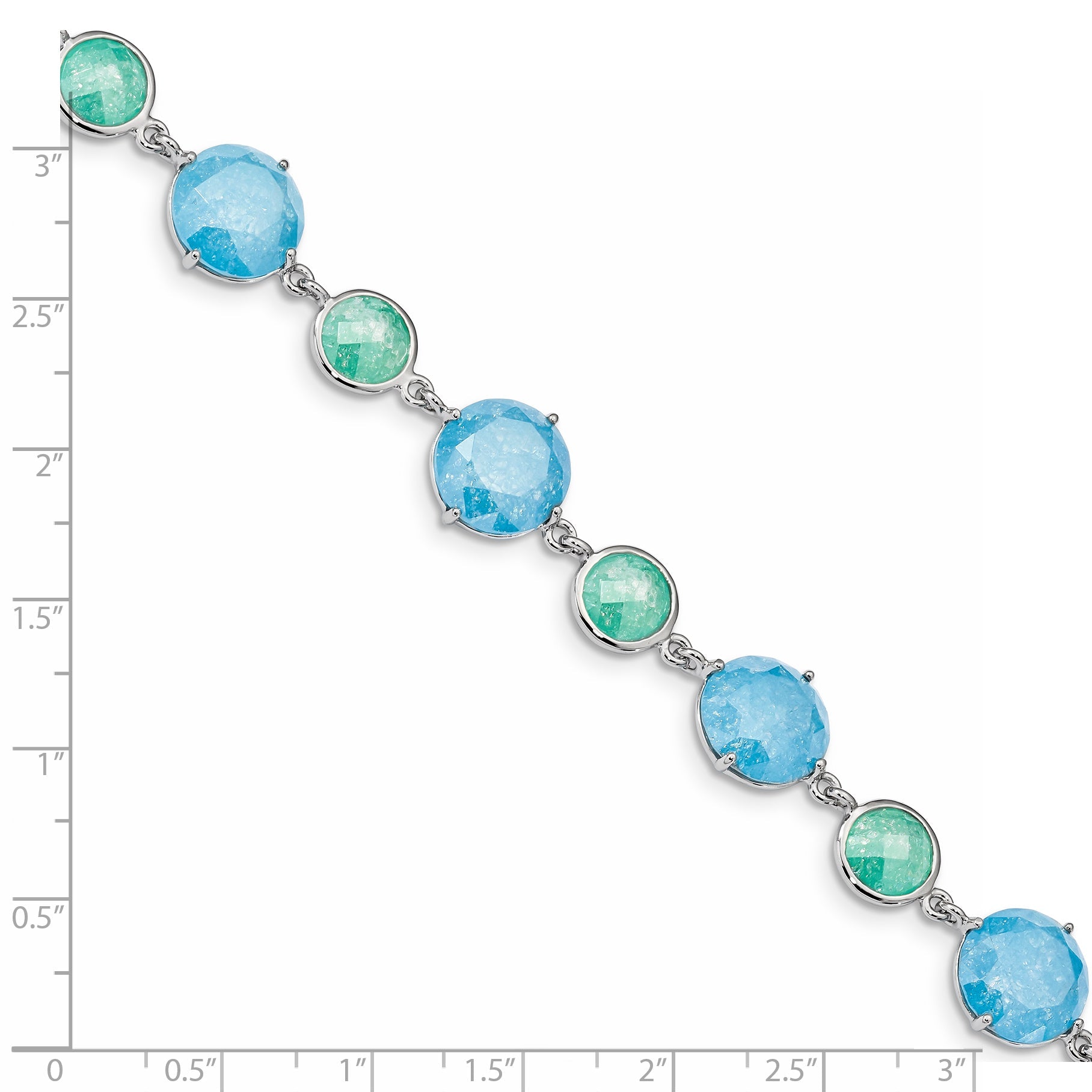 The 7.25 Inch Sterling Silver Rhodium-Plated Green and Blue Ice Cubic Zirconia Bracelet is a true jewel of elegance. Crafted from 925 sterling silver, this bracelet boasts a polished finish for a gleaming look. The piece shines with vivid green and blue synthetic cubic zirconia stones, round cut for sparkle. Rhodium plating adds a touch of prestige, ensuring lasting shine. A fancy lobster clasp secures it in style, with a 1-inch extender for a flexible fit. The 11.88 mm wide chain enhances its allure. The 7.25 Inch Sterling Silver Rhodium-Plated Green and Blue Ice CZ Bracelet is perfect for any occasion.