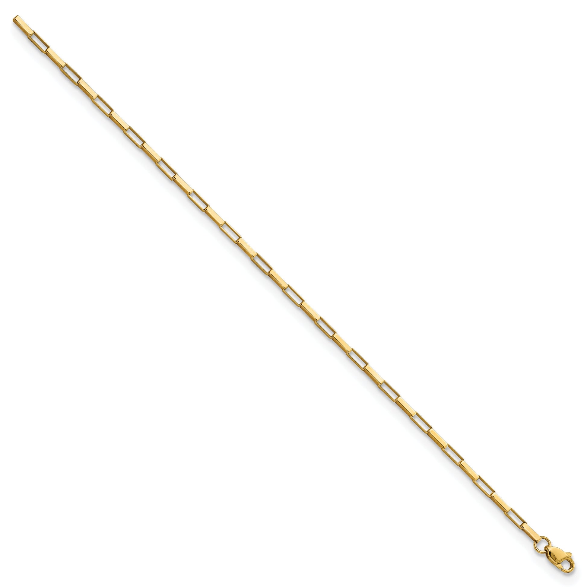 Discover the allure of the 7.5 Inch 14K Polished Fancy Box Links Bracelet. Crafted from 14K gold, this stunning piece exudes sophistication and elegance. Its polished finish highlights the beauty of its yellow gold hue. The bracelet measures 2.23 mm in width, ensuring a balance of subtle elegance without compromising durability. The fancy box links design adds a unique touch, while the secure lobster clasp offers peace of mind. Elevate any outfit with this classic and versatile bracelet. Make the 7.5 Inch 14K Polished Fancy Box Links Bracelet a cherished part of your jewelry collection today.