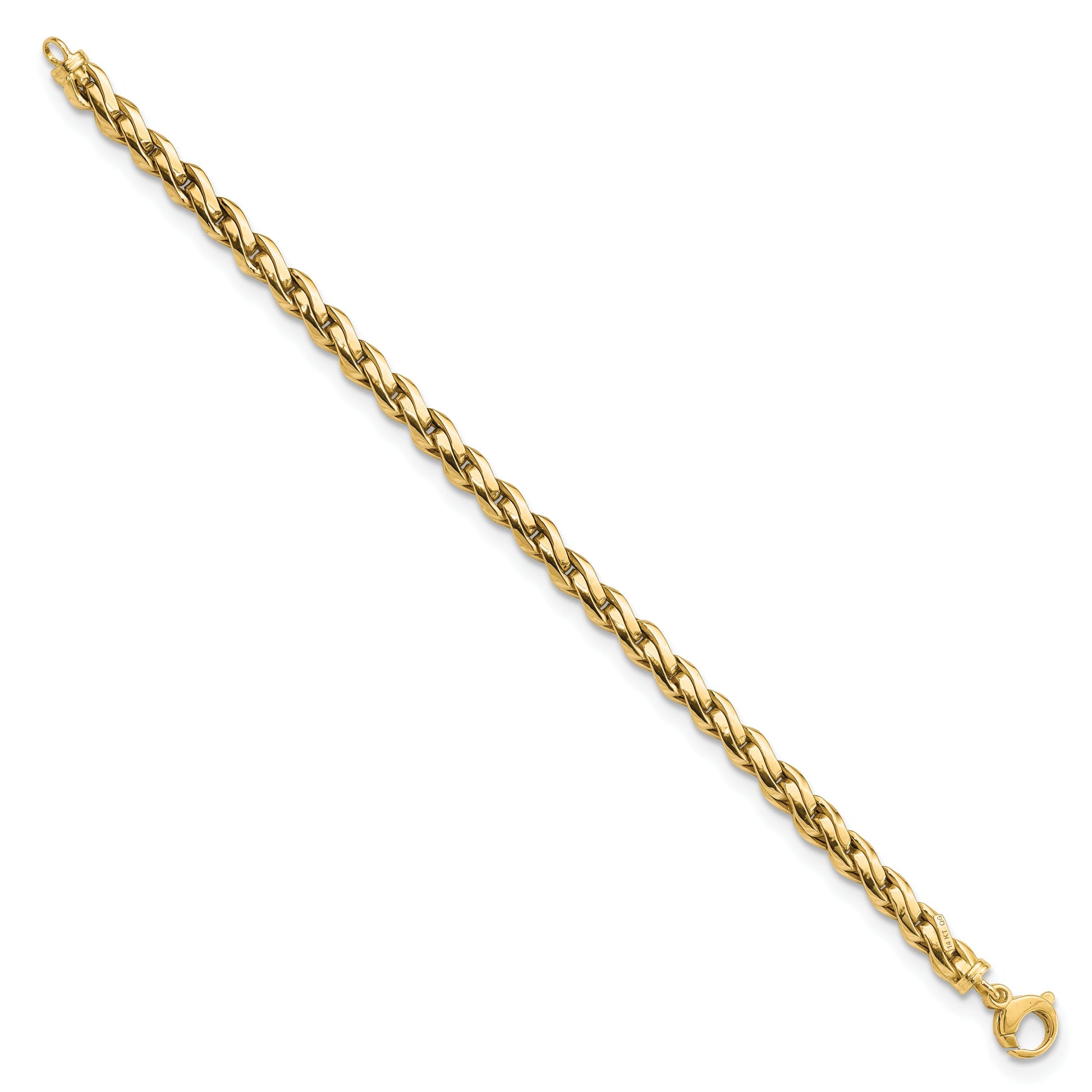 The 7.5 Inch 14K Polished Fancy Link Bracelet is a blend of elegance and style. This exquisite bracelet, crafted from 14K yellow gold, captures attention with its polished finish. Its fancy link design sets it apart, making it a standout piece for any occasion. The bracelet measures 7.5 inches in length and 5.5 mm in width, providing a perfect fit while adding a touch of sophistication. A sturdy lobster clasp ensures it stays secure on your wrist. Elevate your jewelry collection with this 7.5 Inch 14K Polished Fancy Link Bracelet.