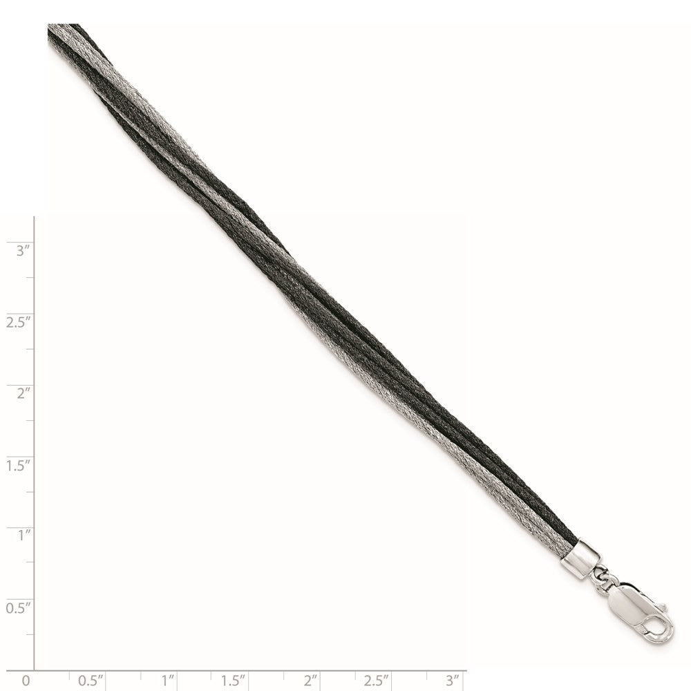 Discover the elegance of the 7.5 Inch Sterling Silver Black Rhodium Wire Mesh 8 Strand Bracelet. Crafted from premium 925 sterling silver, this stunning bracelet features eight strands of black rhodium-accented wire mesh, creating a sophisticated contrast with its white tone. The piece offers a comfortable 7.5-inch length, effortlessly adorning your wrist with style. A durable lobster clasp ensures that it stays securely in place, providing both beauty and function. Perfect for any occasion, the 7.5 Inch Sterling Silver Black Rhodium Wire Mesh 8 Strand Bracelet adds a touch of elegance to any outfit.
