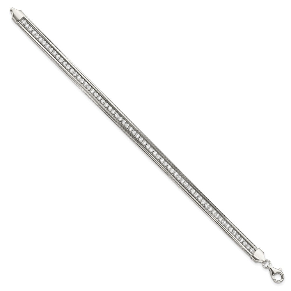 The 7.5 Inch Sterling Silver CZ Polished Bracelet shines with a timeless elegance. Crafted from 925 sterling silver, it’s polished to catch the light skillfully. Its 7.5-inch length fits most wrists comfortably, making it an ideal accessory for any occasion. The bracelet features sparkling synthetic cubic zirconia stones set securely, adding a touch of glamour. Its fancy lobster clasp ensures a secure fit, while the semi-solid design balances strength and flexibility. Elevate your style effortlessly with the 7.5 Inch Sterling Silver CZ Polished Bracelet, a piece that embodies sophistication and charm.