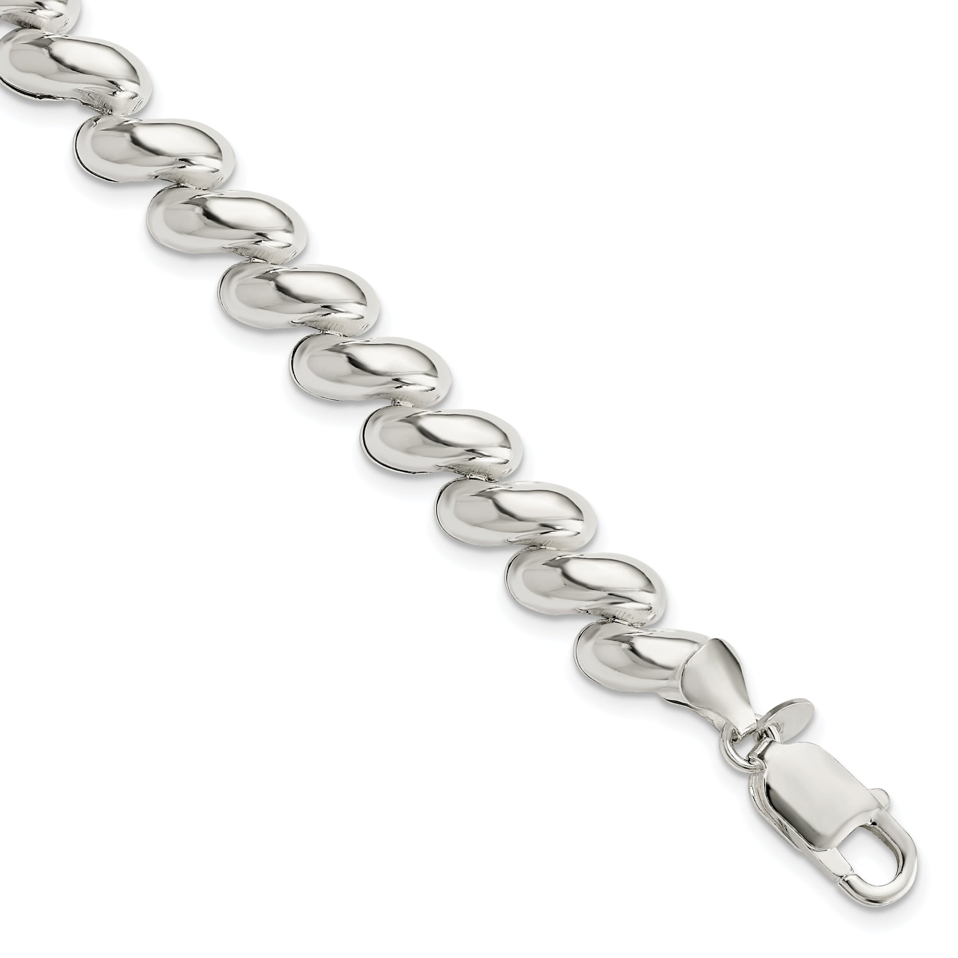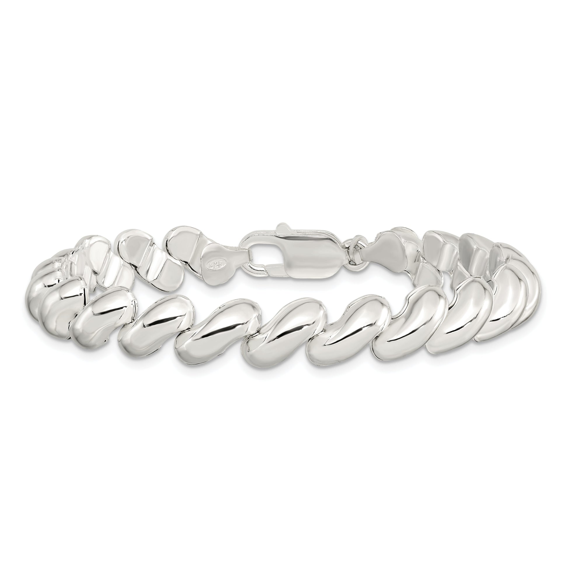 The 7.5 Inch Sterling Silver Fancy Polished San Marco Bracelet is a stunning piece that adds a touch of elegance to any outfit. Crafted from quality 925 sterling silver, this bracelet features a sleek polished finish that catches the light beautifully. Its link design, with a significant 8.9 mm width, provides a bold yet sophisticated look. The bracelet is conveniently secured with a reliable lobster clasp, ensuring it stays in place throughout your day. Lightweight and hollow, the 7.5 Inch Sterling Silver Fancy Polished San Marco Bracelet makes a perfect gift or personal treat for those who appreciate timeless style.