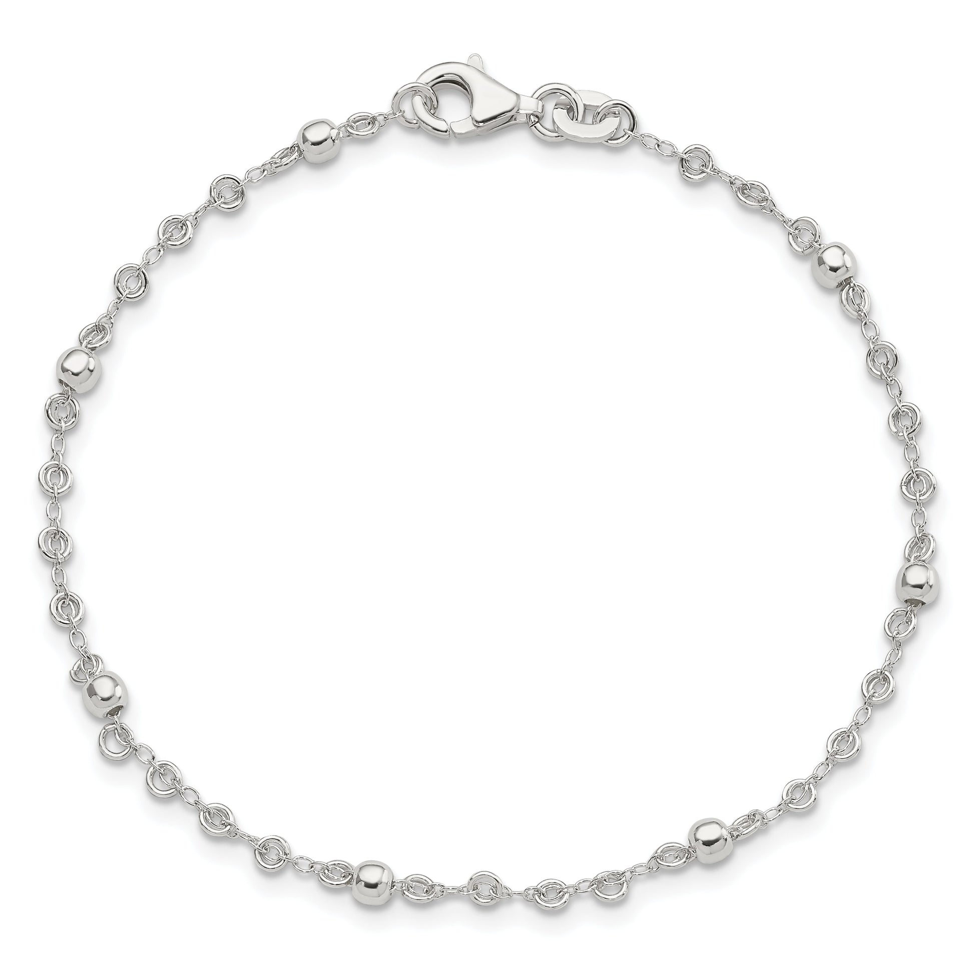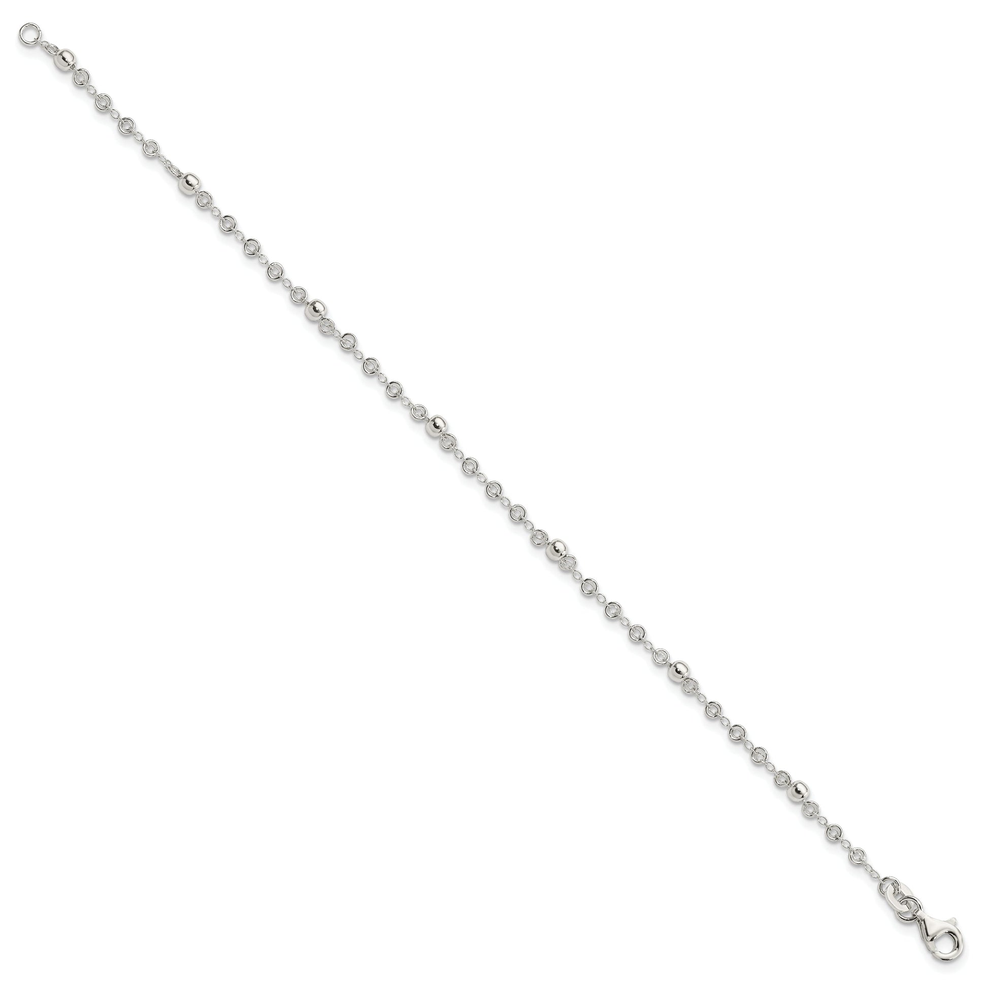 The 7.5 Inch Sterling Silver Polished Fancy Bead Bracelet effortlessly adds a touch of luxury to any outfit. This bracelet, crafted from high-quality 925 sterling silver, radiates elegance. The 2 mm fancy chain flaunts a polished finish that catches the light brilliantly. It features 3 mm elements and a 6 mm lobster clasp, providing both security and style. With a generous 7.5-inch length, it drapes beautifully around the wrist. The exquisite hand-stamped design is a standout. Discover the elegance of the 7.5 Inch Sterling Silver Polished Fancy Bead Bracelet.