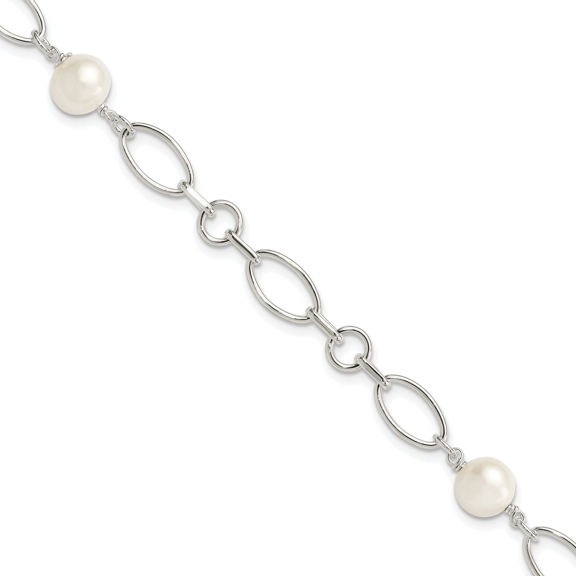 Discover elegance with the 7.5 Inch Sterling Silver Polished FW Cultured Pearl Bracelet. Crafted from 925 sterling silver, this stunning piece showcases two near-round white pearls, each 8 to 9 mm wide. The pearls are crafted with care through a cultured process, revealing a distinct beauty. The bracelet's polished finish enhances its charm and the fancy chain design offers a unique flair, measuring 7.5 inches in length with a 6 mm width. Secured with a sturdy lobster clasp, this piece ensures both style and longevity. Adorn your wrist with the 7.5 Inch Sterling Silver Polished FW Cultured Pearl Bracelet, a timeless addition to any jewelry collection.