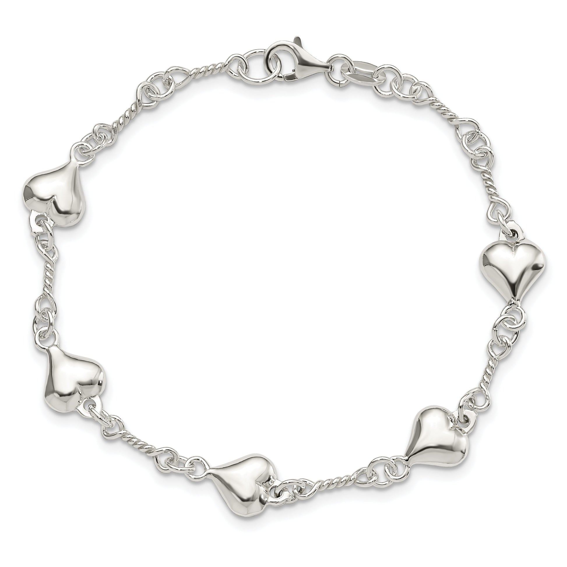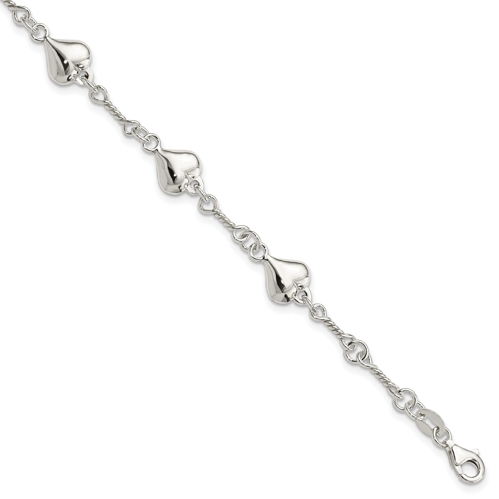 The 7.5 Inch Sterling Silver Polished Heart Bracelet radiates elegance while offering a sweet touch to any outfit. Crafted with 925 sterling silver, this fashion chain bracelet reflects expert craftsmanship with its polished finish. The bracelet's 8.75 mm width gives it a bold presence, without overshadowing its delicate charm. Designed for easy wear, the fancy lobster clasp ensures a secure fit for any wrist size. With its theme-focused heart charm, this semi-solid piece is the perfect gift or personal treasure. The 7.5 Inch Sterling Silver Polished Heart Bracelet is a timeless addition to any jewelry collection.