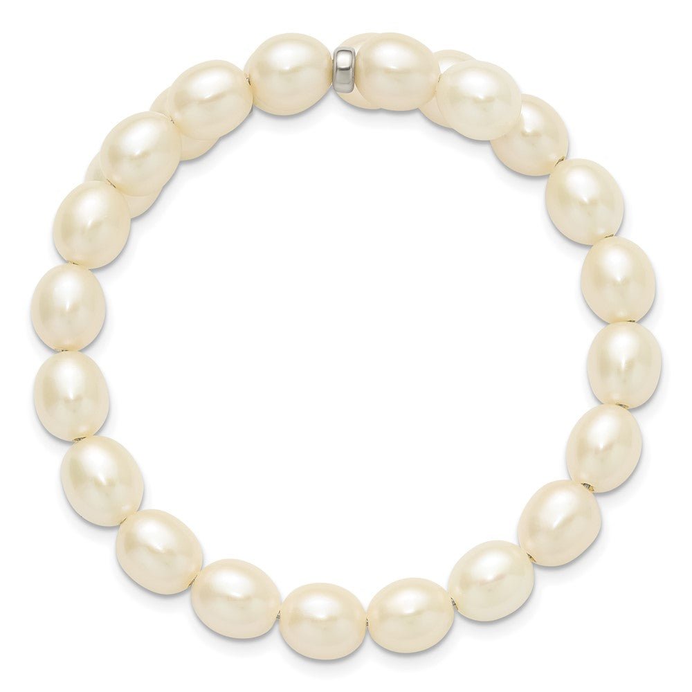 Introducing the elegant 7.5 Inch Sterling Silver Rh 7-8mm White Rice Fw Cultured Pearl Flexible Bracelet. Crafted from 925 sterling silver, this hand-made piece boasts polished rhodium plating. It features 21 gleaming white freshwater pearls. These 7-8mm rice-shaped pearls captivate with their delicate charm. The bracelet's slip-on design ensures ease of wear and flexibility for everyday elegance. Each pearl is carefully cultured and treated for optimum shine. Designed for women who adore graceful simplicity, this sterling silver bracelet enhances any outfit. Discover timeless sophistication with the 7.5 Inch Sterling Silver Pearl Flexible Bracelet.