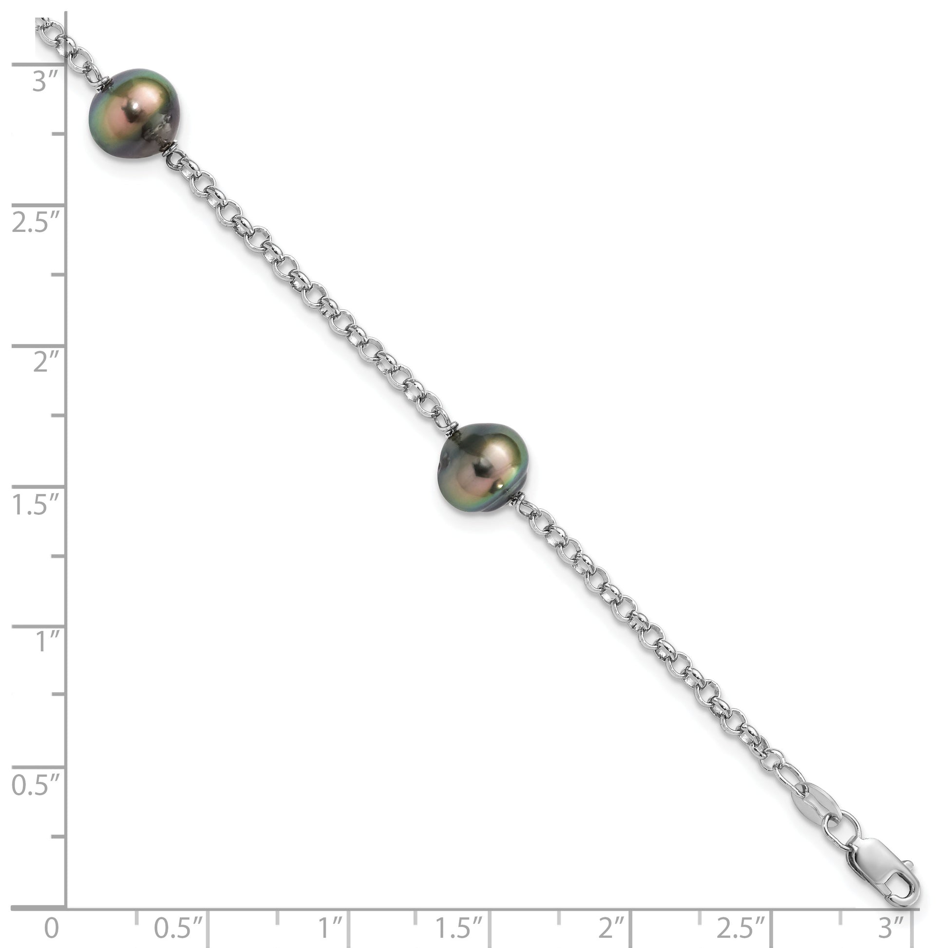 The 7.5-Inch Sterling Silver Rhodium 8-9mm Baroque 3Stat Tahiti Saltwater Pearl Bracelet is a stunning piece sure to captivate any onlooker. Handcrafted with 925 sterling silver, it shines with a polished finish, showcasing three striking black Tahitian baroque pearls. These cultured pearls measure 8 to 9mm, offering a dynamic, organic look. The lobster clasp ensures security and ease of use, making it a must-have bracelet for any fine jewelry collection. This unique blend of elegance and style allows the 7.5-Inch Sterling Silver Rhodium Tahiti Saltwater Pearl Bracelet to stand out on any occasion.