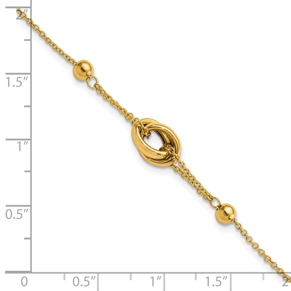 Embrace elegance with the 7.75 Inch 14K Polished Bead And Link Bracelet. Crafted in radiant 14K yellow gold, its polished surface glimmers with every movement. This bracelet combines a fancy chain design with a bead and link pattern, offering subtle sophistication to any wardrobe. Its lobster clasp ensures a secure fit while the 0.75-inch extender allows for slight adjustments for that perfect fit. Measuring 7.75 inches, this elegant bracelet adds a touch of class to your wrist. Wear the 7.75 Inch 14K Polished Bead And Link Bracelet and make a timeless statement.