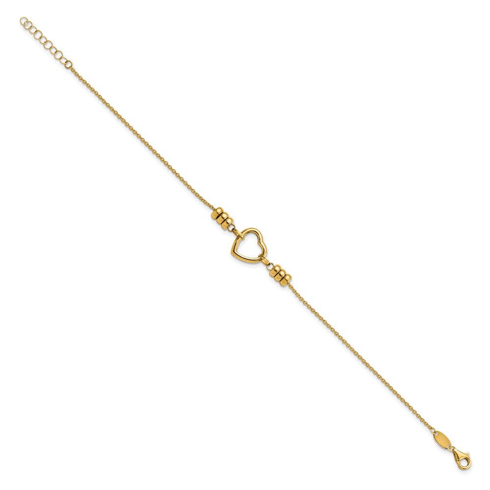 The 7.75 Inch 14K Polished Heart & Bead Bracelet is a shimmering piece of elegance and charm. Crafted from 14K yellow gold, this bracelet radiates sophistication. It features a polished finish and a cable chain, perfect for any occasion. The heart and bead design adds a touch of romance and whimsy. A lobster clasp ensures a secure fit. With a .75-inch extender, it offers versatility in wear. The bracelet's intricate craftsmanship and feminine flair make it a timeless addition to any jewelry collection. Make the 14K Polished Heart & Bead Bracelet yours today.