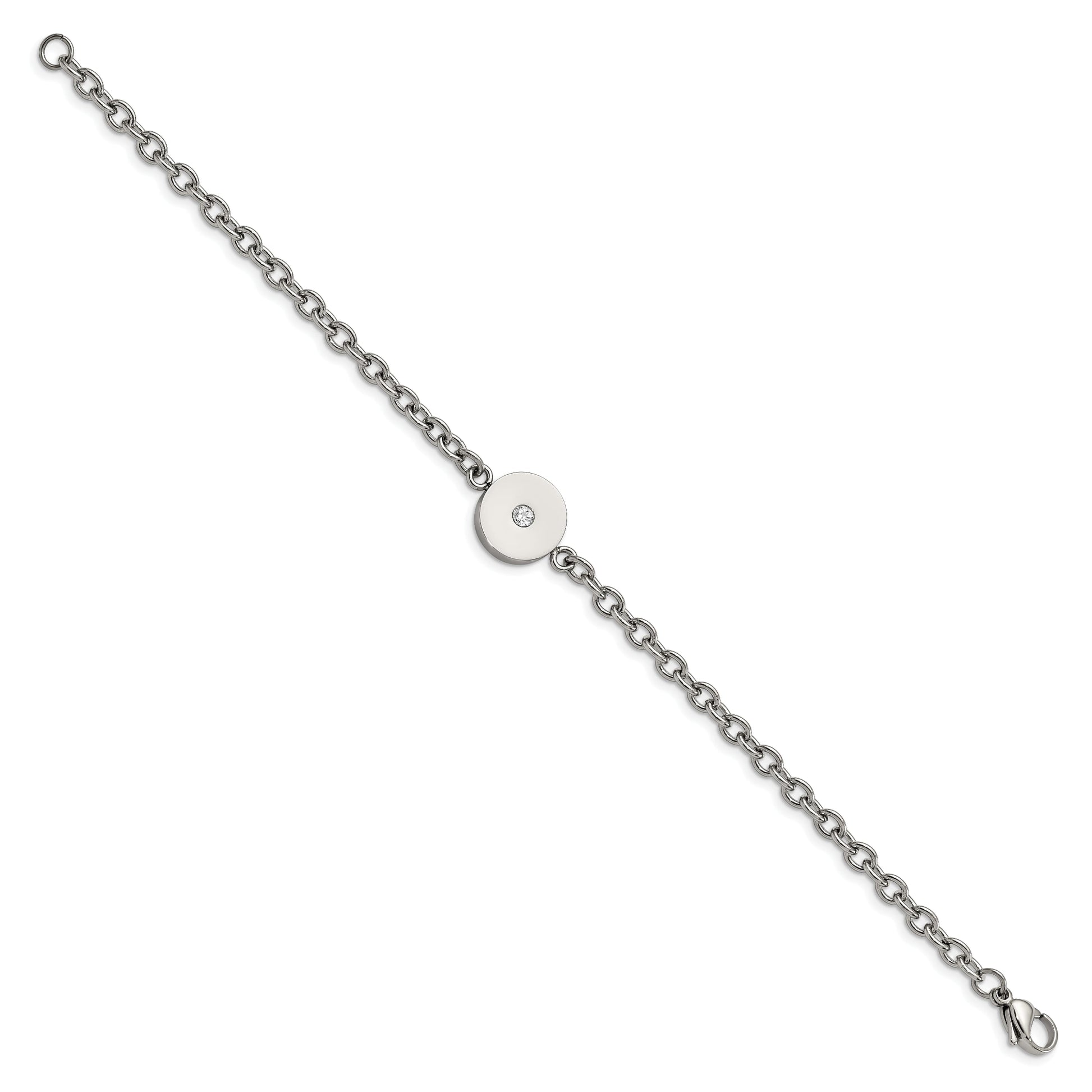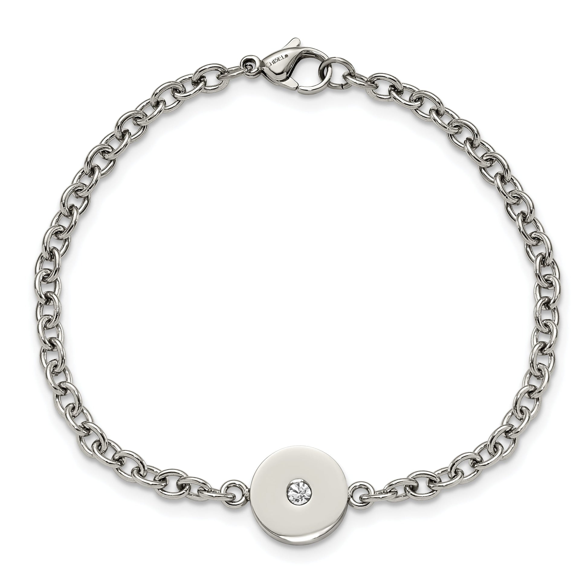 Illuminate your wrist with the 7.75 Inch Stainless Steel Polished Bracelet featuring CZ stones. Crafted from durable stainless steel, this bracelet showcases a polished finish that gleams in the light. The lobster clasp ensures a secure fit at 7.75 inches, while the 4mm width makes it comfortable to wear. The subtle sparkle of crystal stones enhances its elegance, making it perfect for both casual and formal occasions. This women's bracelet in a striking white color is a timeless addition to any jewelry collection. Embrace its sophisticated charm and elevate your style.