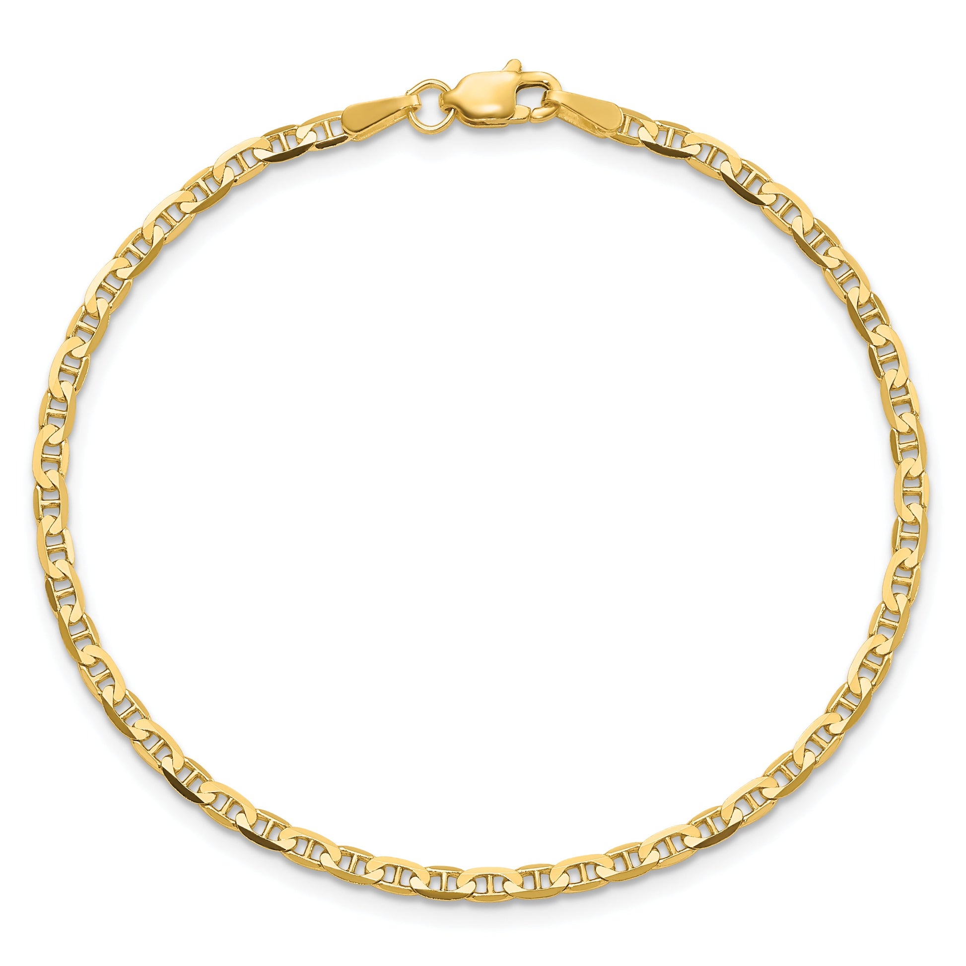 The 7 Inch 10K 2.4mm Flat Anchor Chain offers timeless elegance for your wrist. Crafted from polished 10K yellow gold, this bracelet shines with a beautiful, rich glow. Measuring 7 inches in length and 2.4mm in width, it features a solid, casted design. The anchor-style chain and secure lobster clasp add a classic yet sturdy touch. Ideal for both casual wear and special occasions, this fine jewelry piece will elevate any outfit. Treat yourself or a loved one with this stunning 7 Inch 10K 2.4mm Flat Anchor Chain, a must-have for any jewelry collection.