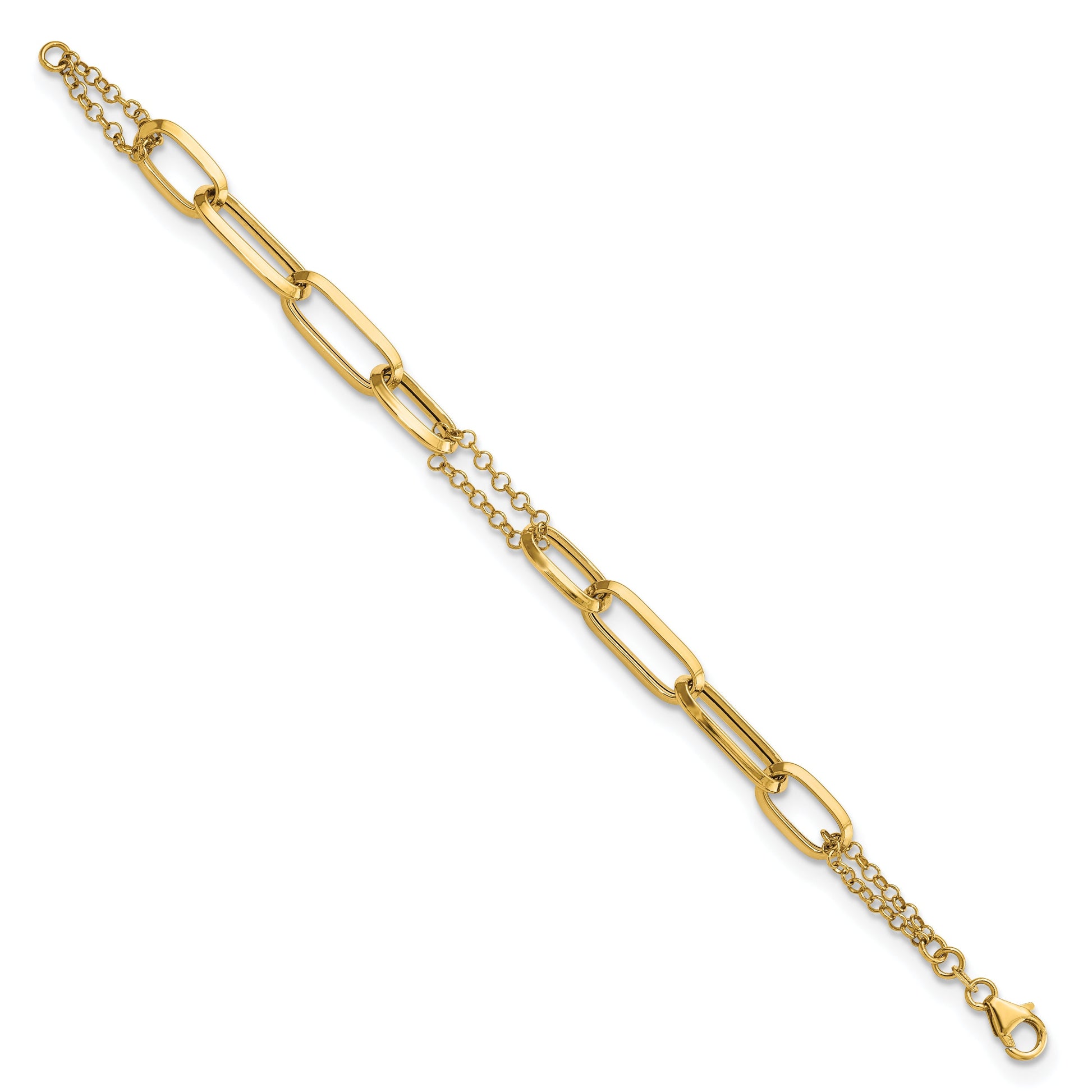 Embrace elegance with our 7 Inch 14K Polished Multi Link Bracelet. Crafted from 14K gold, this bracelet shines with its polished finish, making it a stunning addition to any style. The intricate multi-link design measures 7 inches in length and 8.1 mm in width, delivering a bold yet sophisticated look. It features a fancy lobster clasp, offering durability and ease of use. Perfect for women's jewelry collections, this bracelet adds a touch of class to any outfit. Enhance your elegance with the timeless allure of the 7 Inch 14K Polished Multi Link Bracelet.