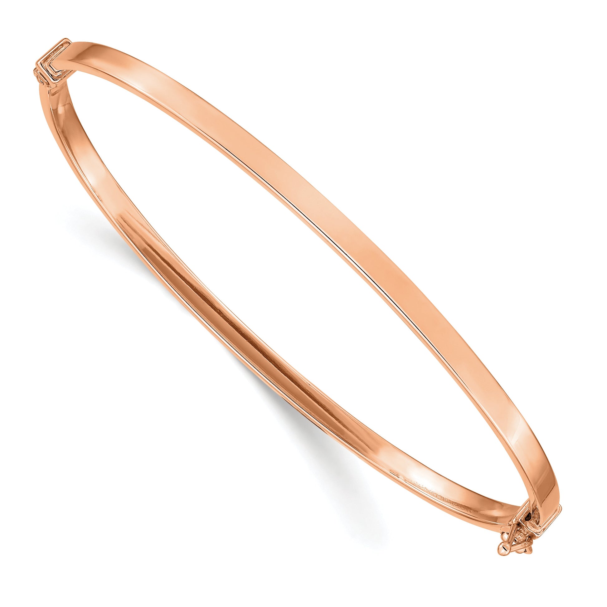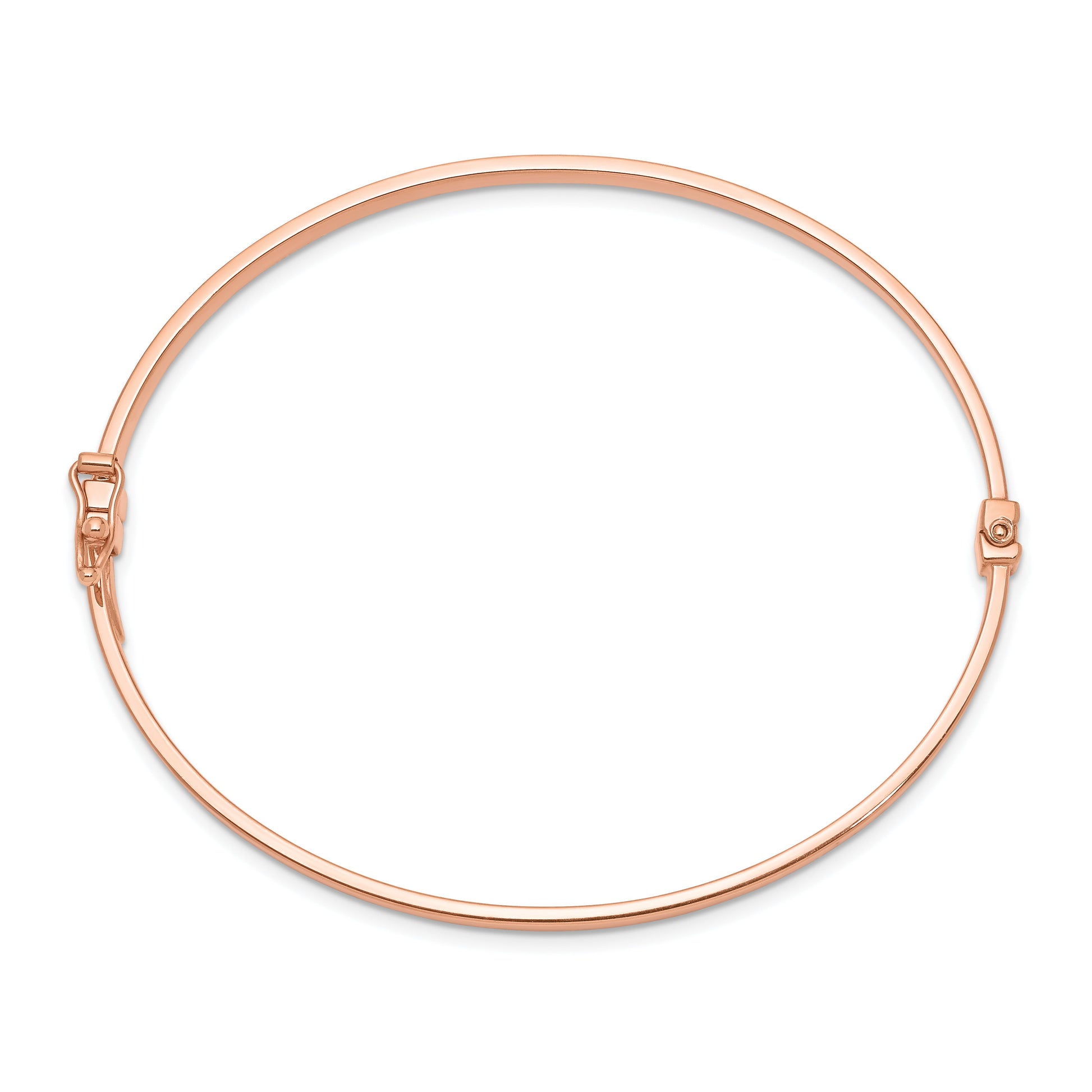 The 7 Inch 14K Rose Gold Polished Hinged Bangle Bracelet is the touch of elegance every woman needs. Crafted from 14K rose gold, the bangle boasts a polished finish that gleams beautifully. It's 7 inches long and 3 mm wide, providing a delicate yet striking look. The hinged design ensures easy wear, while the box catch clasp adds security. This lightweight bangle features a flat edge and can be engraved for a personal touch. Ideal for any occasion, the 7 Inch 14K Rose Gold Polished Hinged Bangle Bracelet is a timeless addition to your jewelry collection.