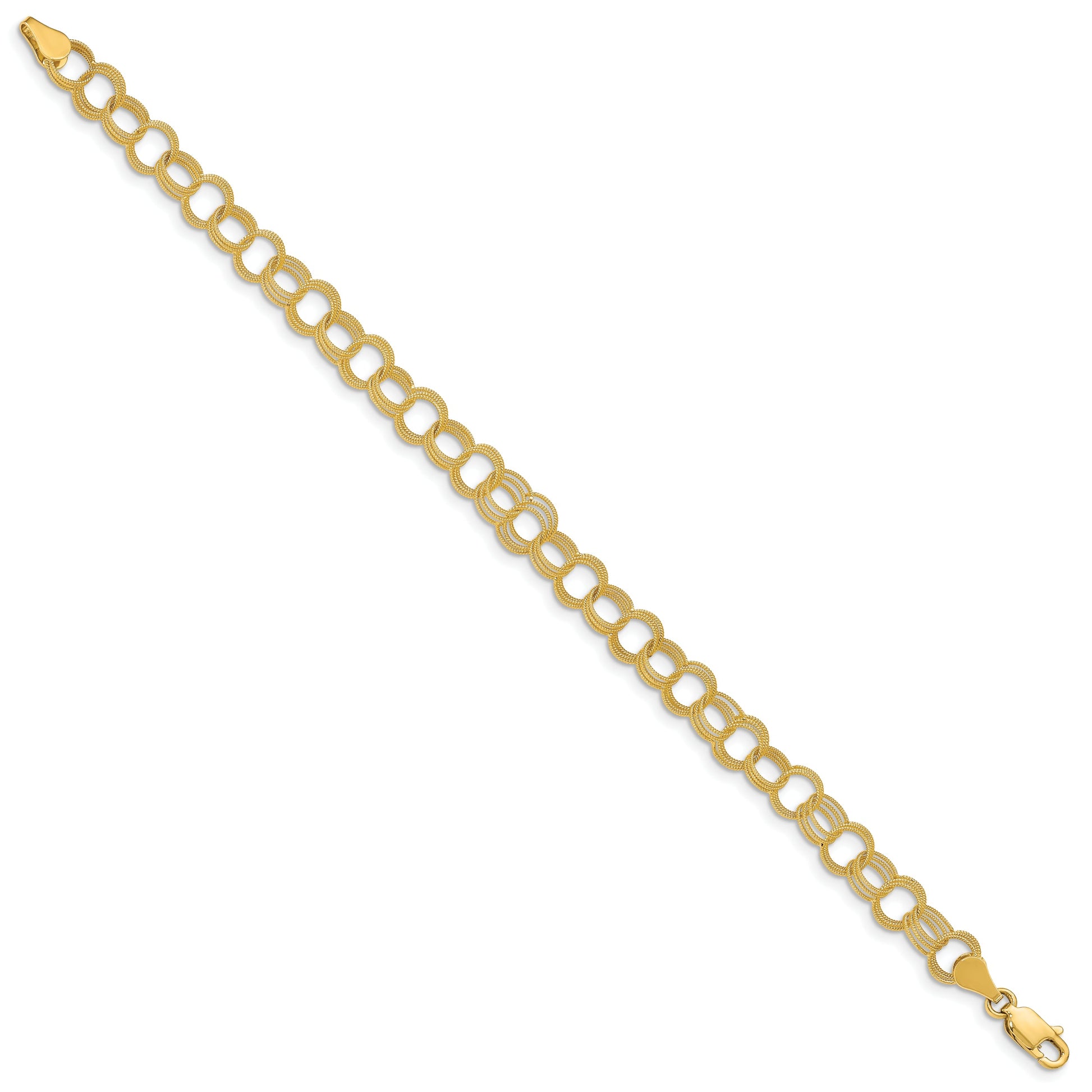 Introducing the 7 Inch 14K Solid Triple Link Charm Bracelet, a true symbol of elegance and sophistication. Crafted from pure 14K yellow gold, this bracelet boasts a solid build that ensures durability and timeless beauty. The 7-inch length and 6 mm width provide a perfect fit, while the lobster clasp offers secure wear. This charm bracelet is not just jewelry; it’s a statement of style and grace. Adorn your wrist with the 7 Inch 14K Solid Triple Link Charm Bracelet and let it shine in any setting.