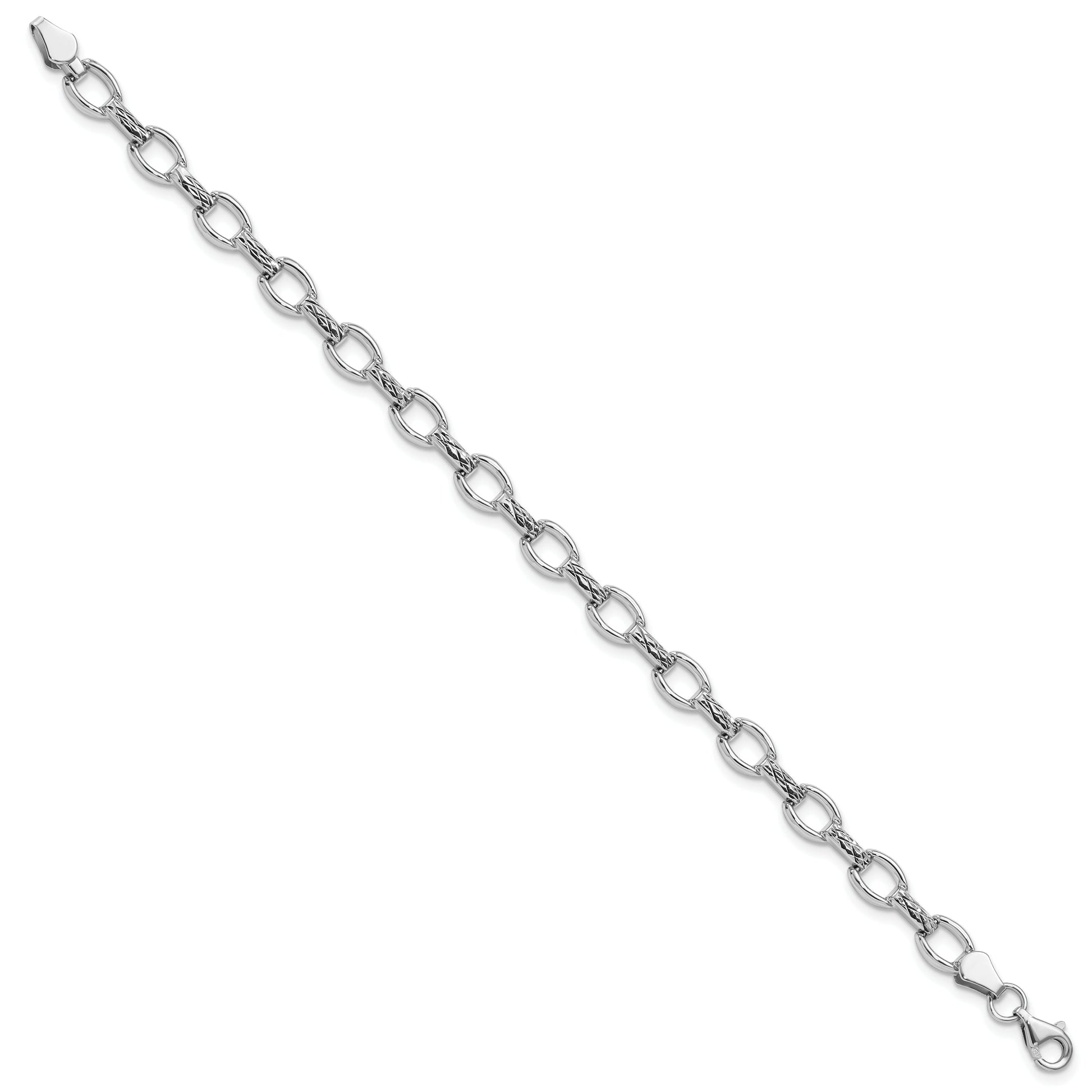 The 7-inch 14K White Gold Diamond-Cut Polished Fancy Bracelet is a shining treasure for your wrist. Crafted from 14K white gold, this bracelet dazzles with a diamond-cut finish that sparkles under any light. The rhodium plating enhances its sleek, polished look, adding some serious bling to your style game. Featuring a fancy lobster clasp, it's easy to wear while ensuring it stays put. With a 6mm width and hollow design, this link-style bracelet is lightweight yet durable. The 7-inch length makes it perfect for most. Elevate your collection with this elegant White Gold Diamond-Cut Fancy Bracelet.