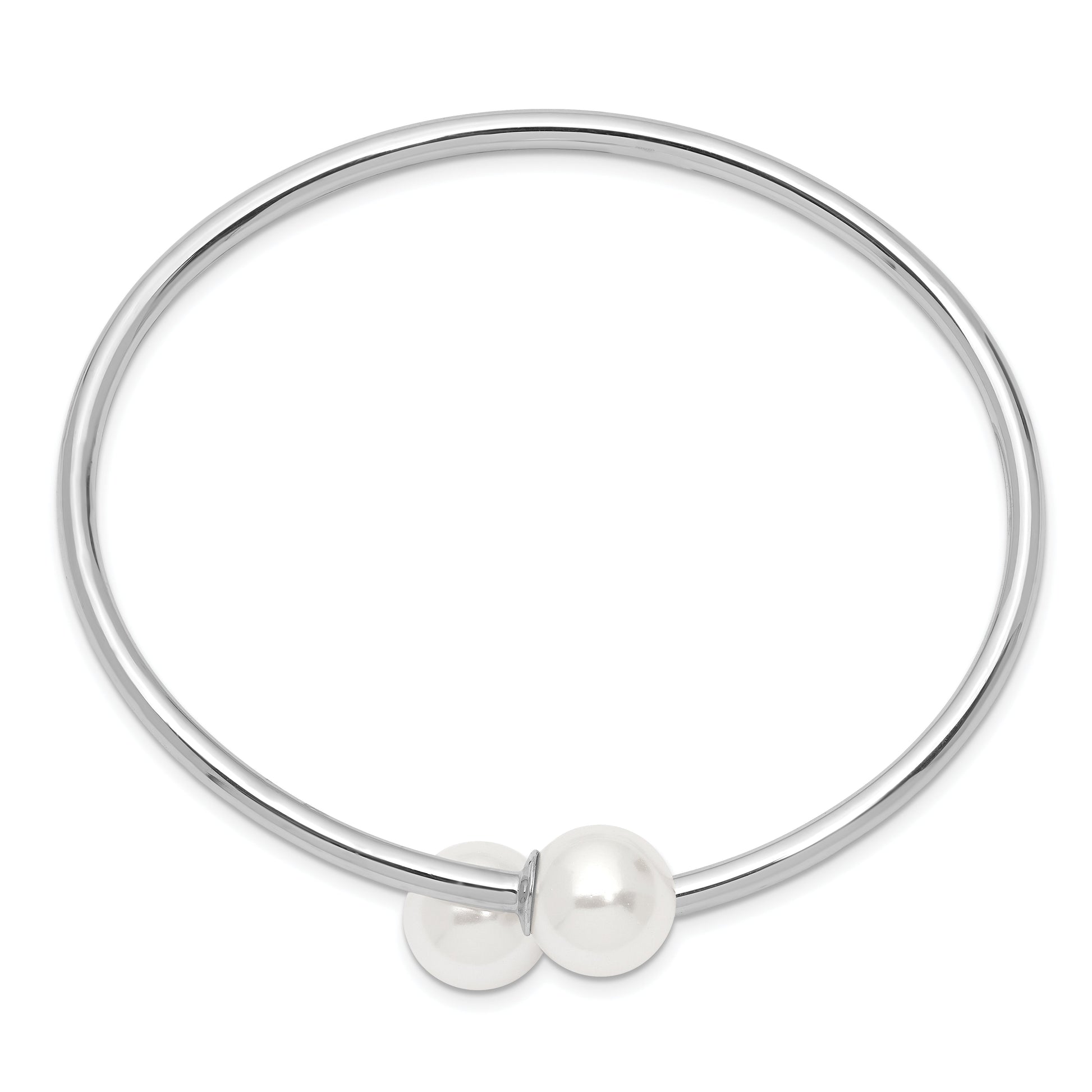 The Majestik Sterling Silver Rhodium-Plated Bangle Bracelet is an elegant addition to any jewelry collection. Crafted from polished 925 sterling silver, this bracelet radiates a refined shine. At the heart of its design are two exquisite 10-11mm white imitation shell pearls, which capture attention with their smooth, round shape. This sophisticated piece slips on with ease, featuring a hollow structure crafted through precise tubing methods that offers comfort and lightweight wear. Perfectly presented in a gift pouch, the Majestik Bangle Bracelet is a sterling choice for those seeking timeless elegance.