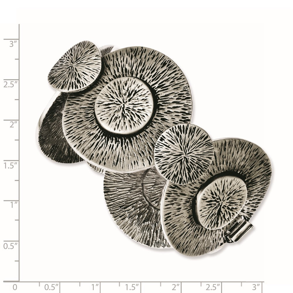 Introducing the 7-Inch Stainless Steel Antiqued Circles Bracelet, a timeless piece of women's jewelry. This bracelet features a polished and antiqued finish, adding a vintage charm to your look. Made of durable stainless steel, it promises longevity and style. The bracelet is 42 mm wide, making a bold yet elegant statement on the wrist. It secures with a reliable fold-over clasp, ensuring it stays put throughout your day. Whether dressing up or down, the 7-Inch Stainless Steel Antiqued Circles Bracelet completes any ensemble with subtle sophistication.