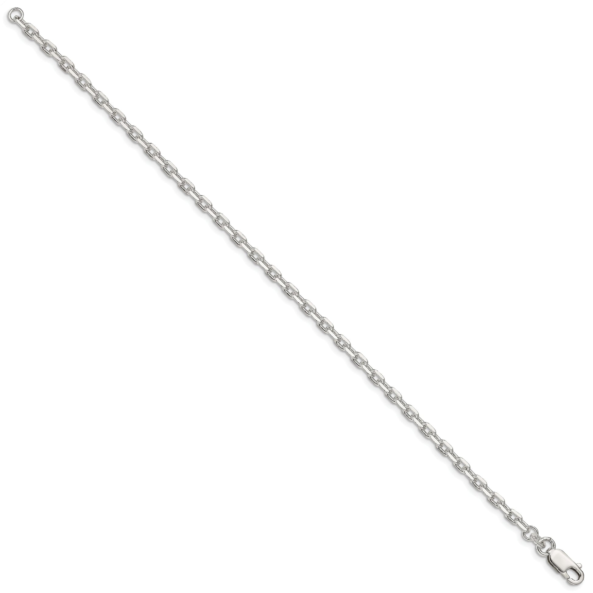The 7 Inch Sterling Silver 3.25mm Beveled Oval Cable Chain bracelet is a stunning piece. Crafted from 925 sterling silver, it shines with its polished finish, offering a blend of elegance and durability. This chain measures 7 inches, making it perfect for your wrist, while the 3.25mm width ensures a sleek yet bold appearance. The lobster clasp adds security so it's easy to wear. The open-link design and beveled edges add a touch of modernity. This solid sterling silver bracelet is sure to complement any outfit, making the 7 Inch Sterling Silver 3.25mm Beveled Oval Cable Chain bracelet an essential addition to your jewelry collection.