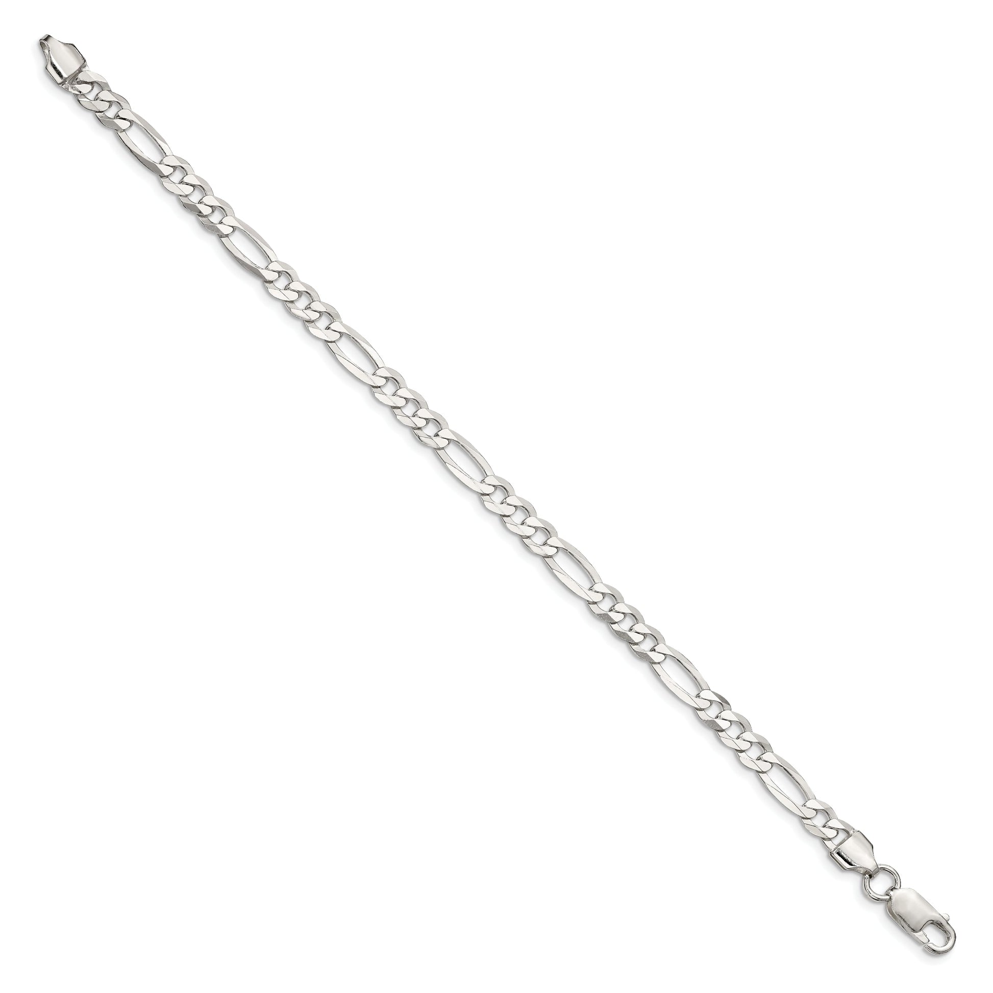 This 7 inch Sterling Silver 5.5mm Lightweight Flat Figaro Chain bracelet is a timeless piece that every man should have in his collection. Crafted from 925 sterling silver, this polished chain shines brilliantly. Its flat 5.5mm width offers a comfortable and sleek appearance. The Figaro chain design is classic, combining elegance with durability. It features an anti-tarnish coating to keep it looking as good as new. Secured with a lobster clasp, this bracelet is both sturdy and chic. Elevate your style with this sterling silver masterpiece and make a statement wherever you go.