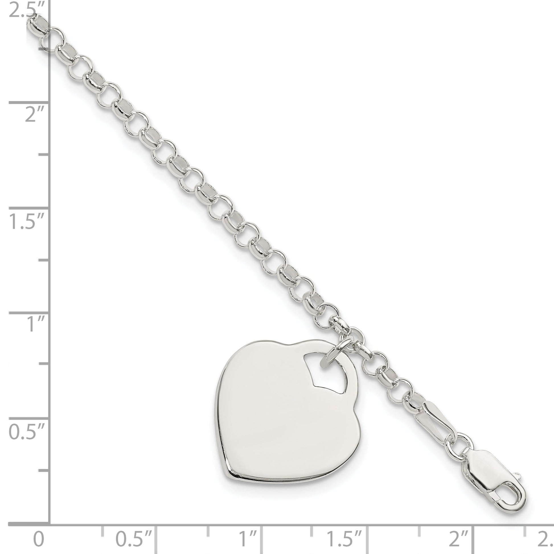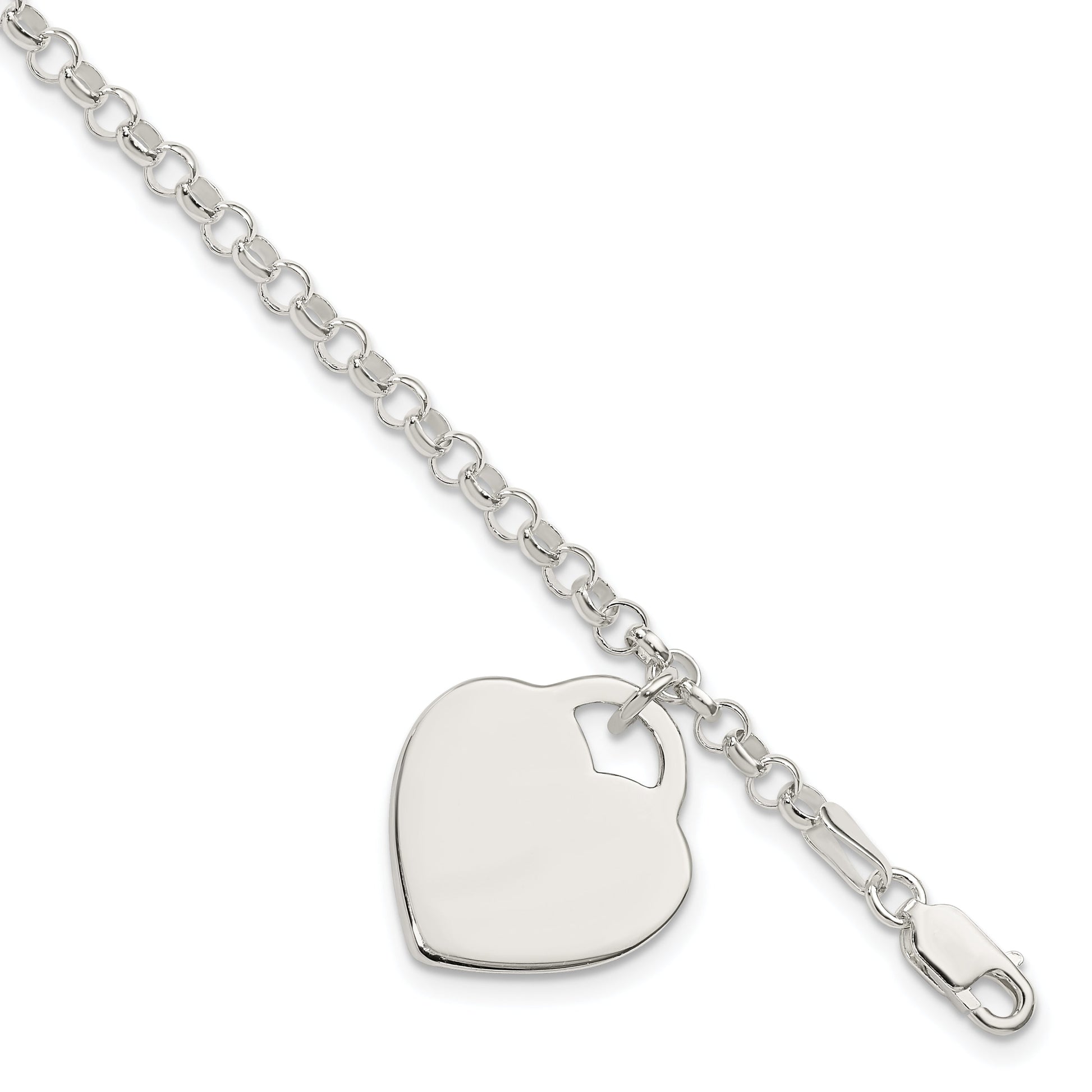 The 7 Inch Sterling Silver Engravable Heart Bracelet is a stunning piece you'll cherish. Crafted from 925 sterling silver, it's both polished and solid, ensuring enduring quality. The 7-inch chain features a 3 mm width and a stylish lobster clasp. The heart charm measures 16 mm in length and 18 mm in width, offering a perfect spot for a personal engraving. This piece is casted with care, adding a custom touch to any outfit. Elevate your jewelry with the timeless elegance of this engravable heart bracelet.