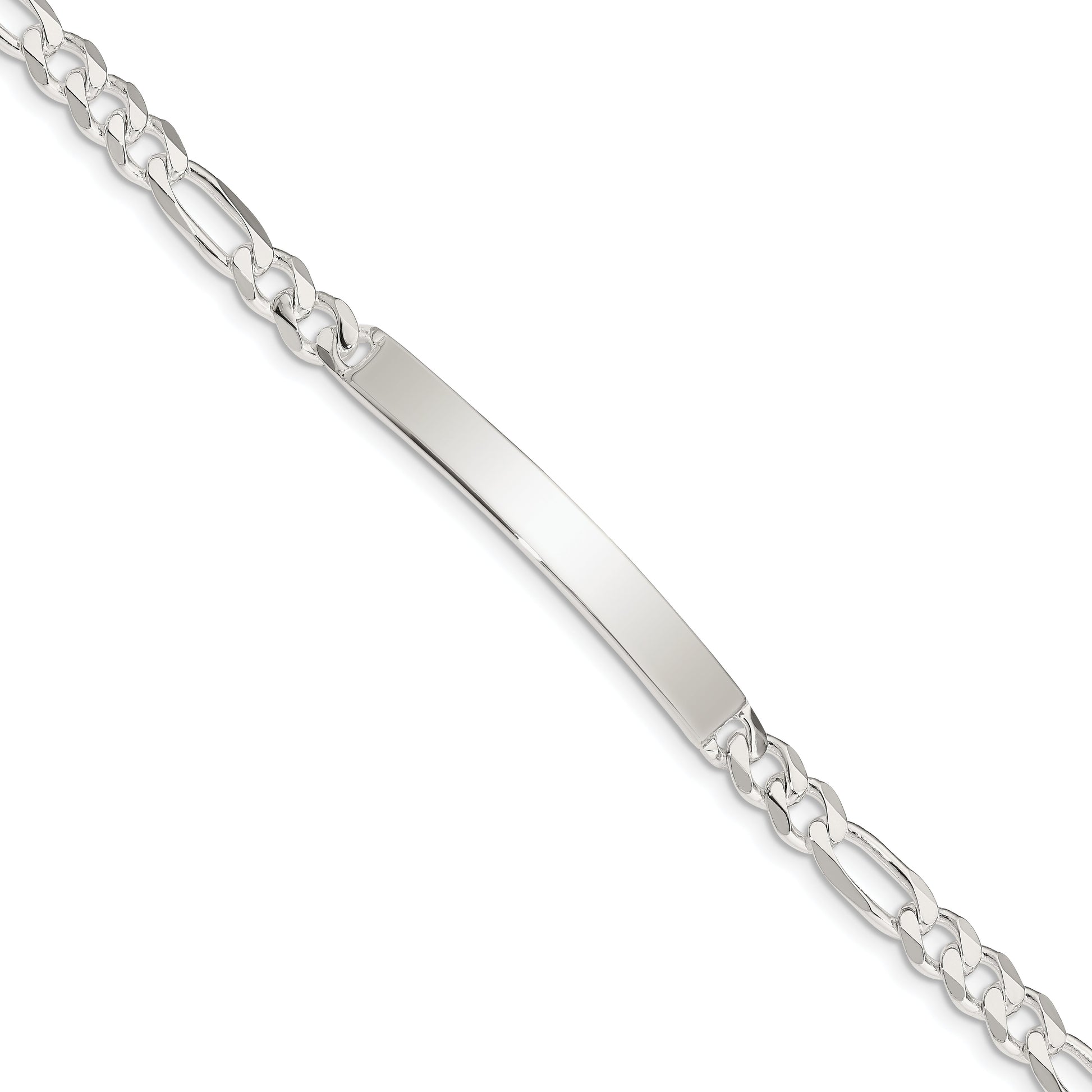 Meet the 7 Inch Sterling Silver Figaro Link ID Bracelet, a stunning piece for the modern woman. Crafted from high-quality 925 sterling silver, this bracelet boasts a polished shine that captivates the eye. At 7 inches, it's designed for optimum comfort and style, fitting snugly on the wrist. The Figaro link adds a touch of sophistication with its unique chain width of 5 mm. This bracelet is not just a beauty but engravable, making it a personal keepsake. Fitted with a lobster clasp, it stays securely in place all day. The 7 Inch Sterling Silver Figaro Link ID Bracelet is an essential addition to any jewelry collection.