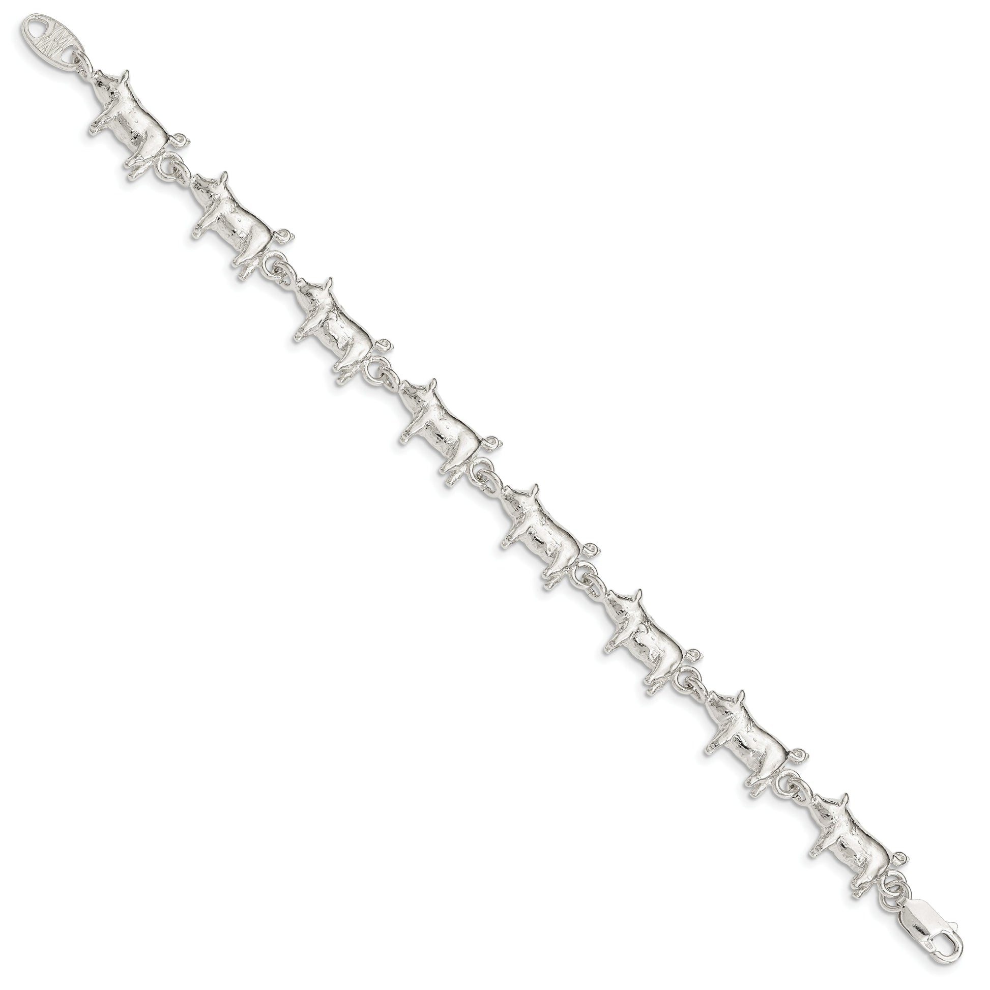 The 7 Inch Sterling Silver Pig Bracelet is a perfect blend of elegance and charm. Expertly crafted from pure 925 sterling silver, this bracelet features a polished finish that shines brilliantly. Measuring 7 inches in length, its chain offers a solid 10mm width, making it a standout piece. The convenient lobster clasp ensures a secure fit, so you can wear it with confidence. Casted to perfection, its white sterling silver material adds a sophisticated touch. Embrace a bit of whimsy and luxury with the 7 Inch Sterling Silver Pig Bracelet.
